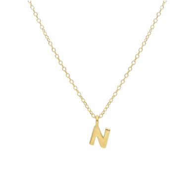18k yellow gold rolo thin 16" necklace with small 5mm letter initial N
