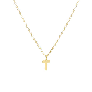 18k yellow gold rolo thin 16" necklace with small 5mm letter initial T
