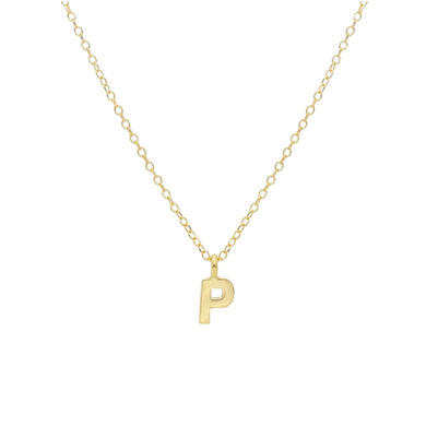 18k yellow gold rolo thin 16" necklace with small 5mm letter initial P