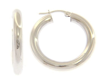 PENDIENTES DE ARO CON CÍRCULO REDONDO DE ORO BLANCO DE 18 QUILATES, DIÁMETRO 30 MM x 4 MM, HECHOS EN ITALIA
