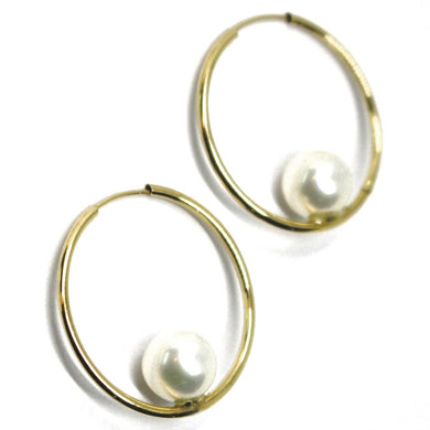 PENDIENTES DE ARO CIRCULARES EN ORO AMARILLO DE 18 QUILATES, TUBO DE 1 MM, DIÁMETRO DE 2,5 CM, PERLA COLGANTE