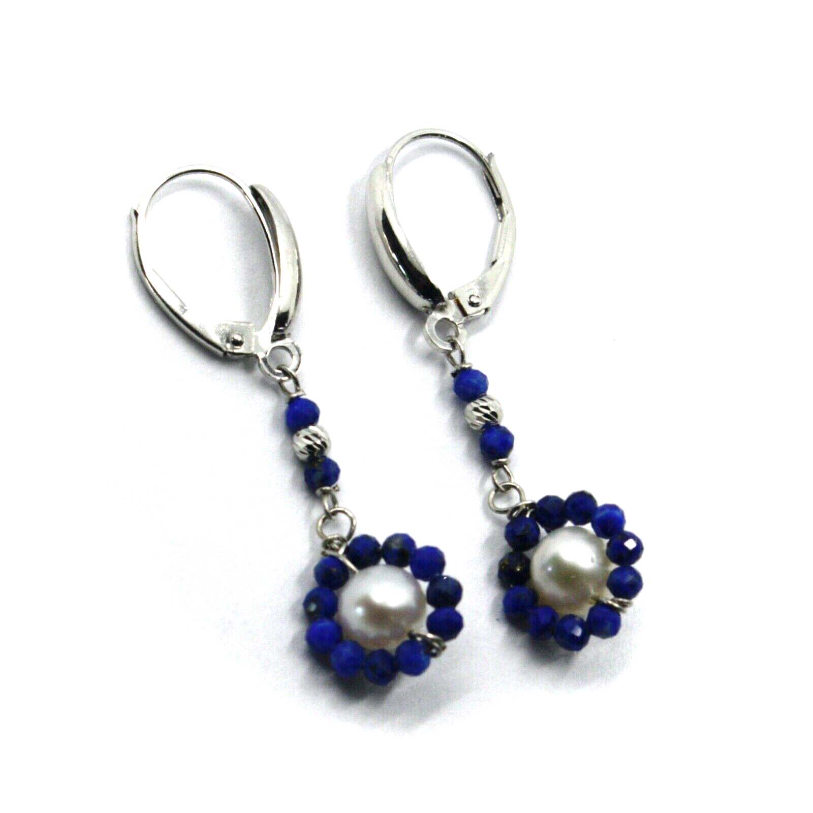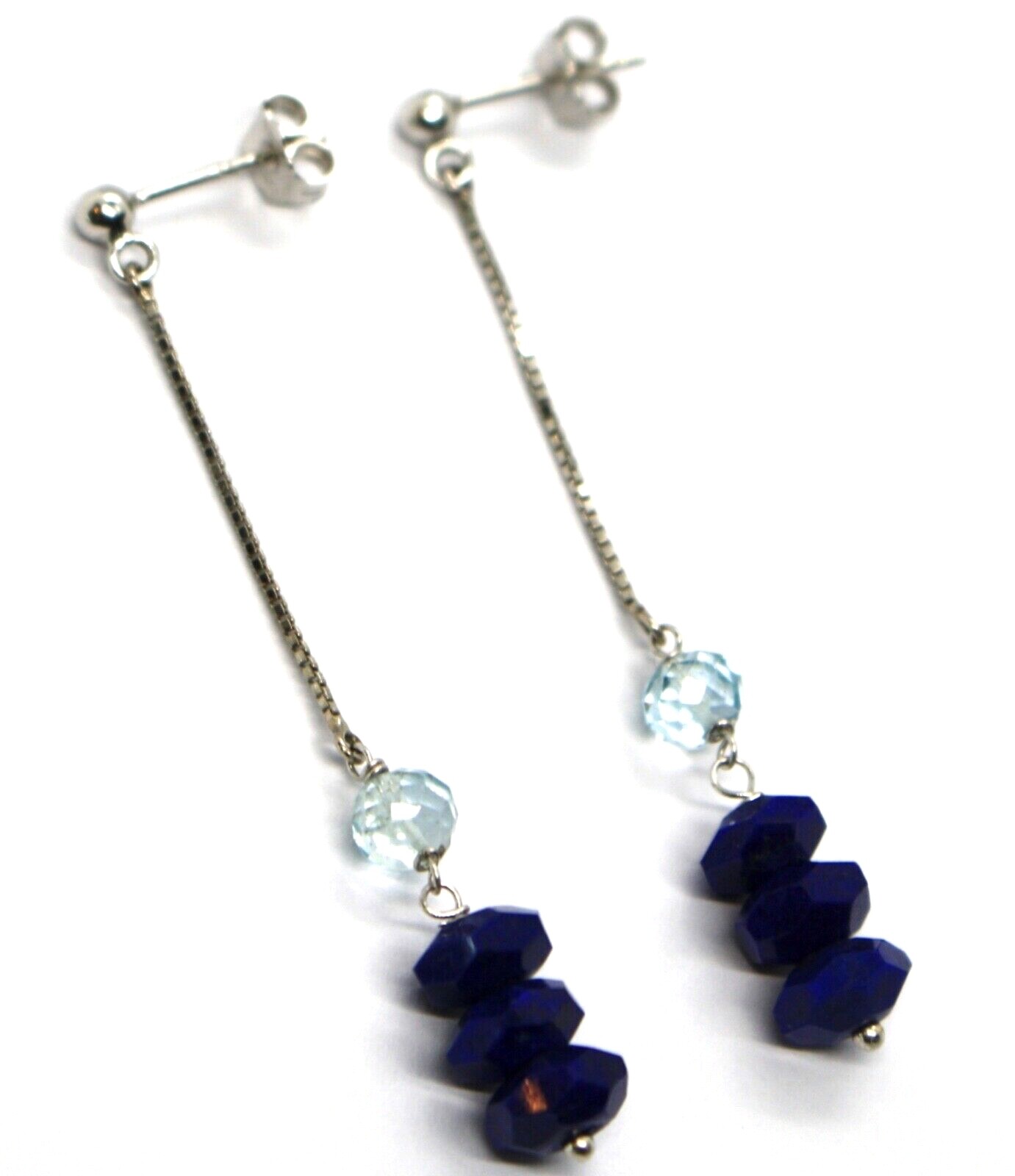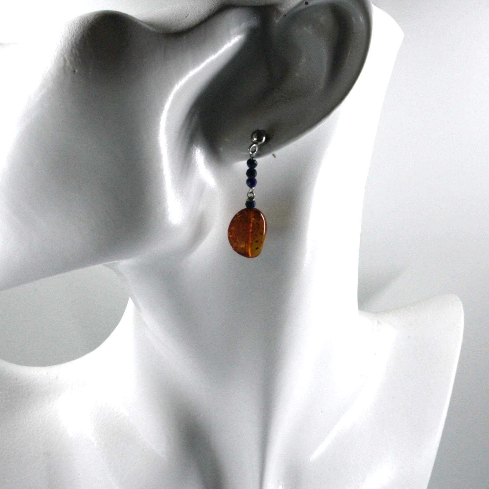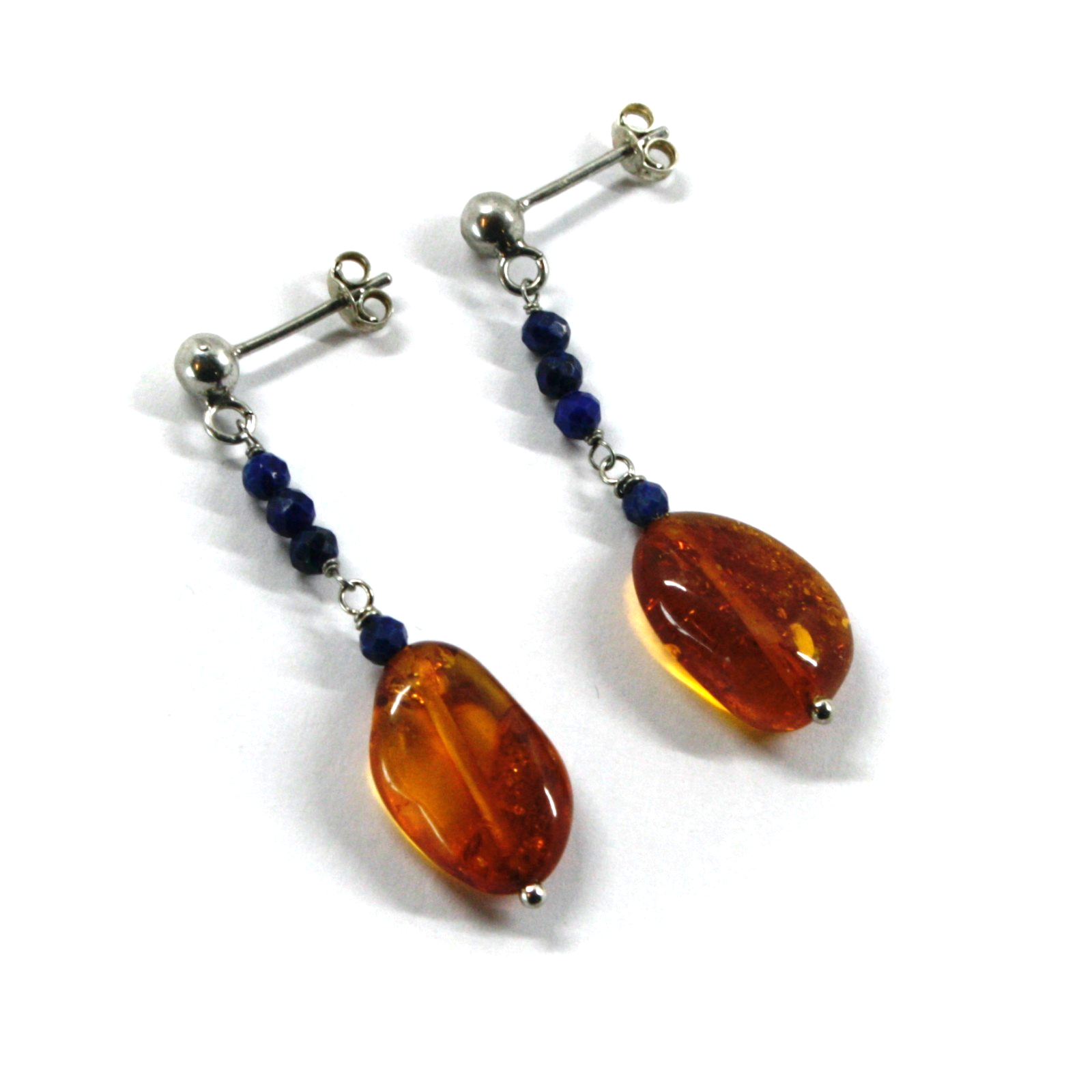 18k white gold pendant 38mm earrings orange amber drops and blue lapis lazuli