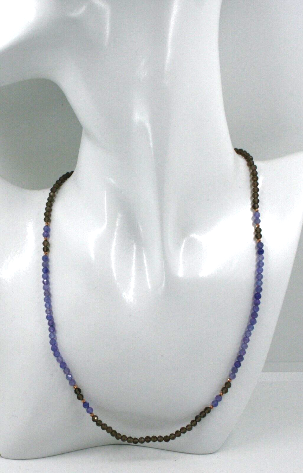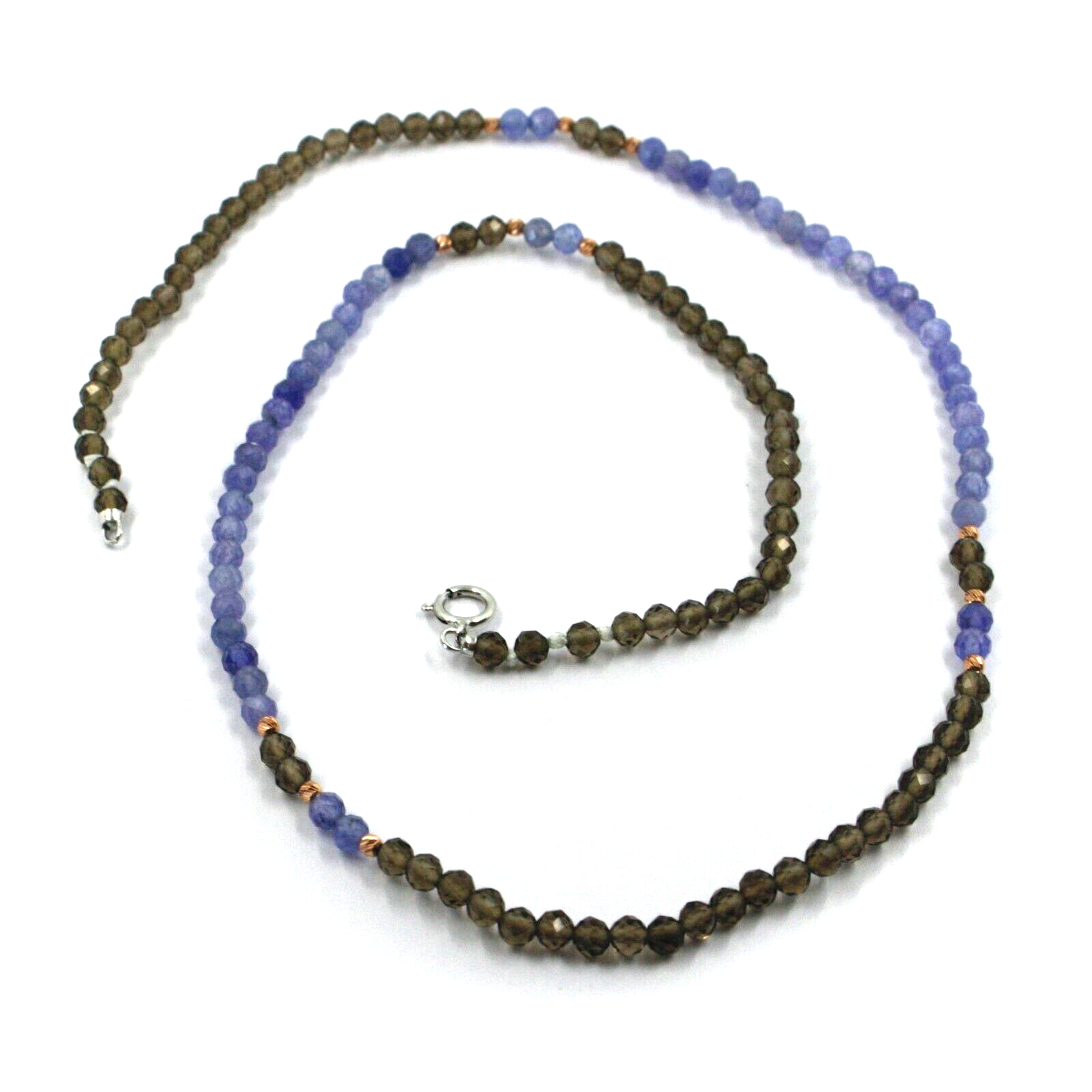 Con tanzanita facetada azul de 3,5 mm y cuarzo ahumado.   . Longitud: 45 cm (18,5 pulgadas)