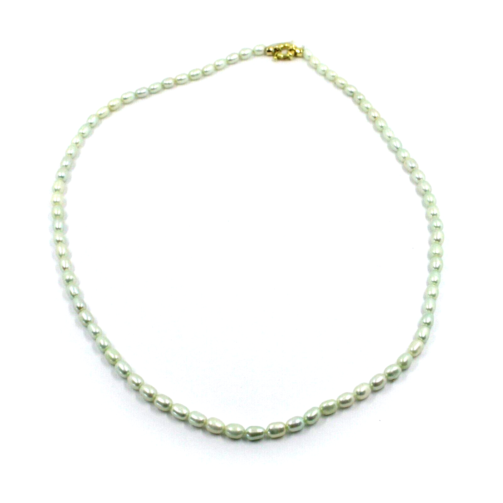 con perlas ovaladas de agua dulce de 3,5x5 mm.