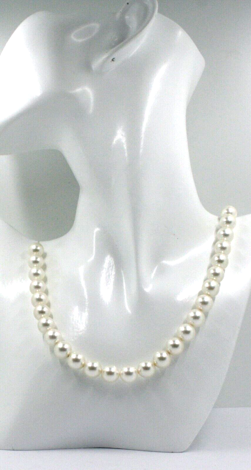 con grandes perlas sintéticas blancas de 10,5 mm.