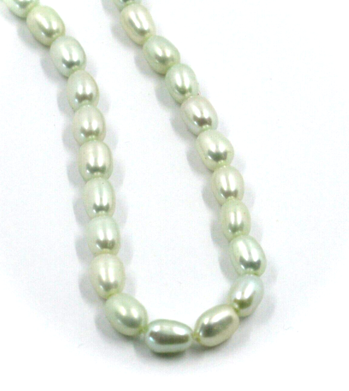 con perlas de agua dulce verdes ovaladas de 3,5x5 mm.
