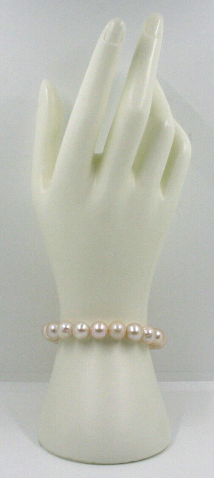 con perlas de agua dulce redondas de color rosa de 9,5/10 mm.