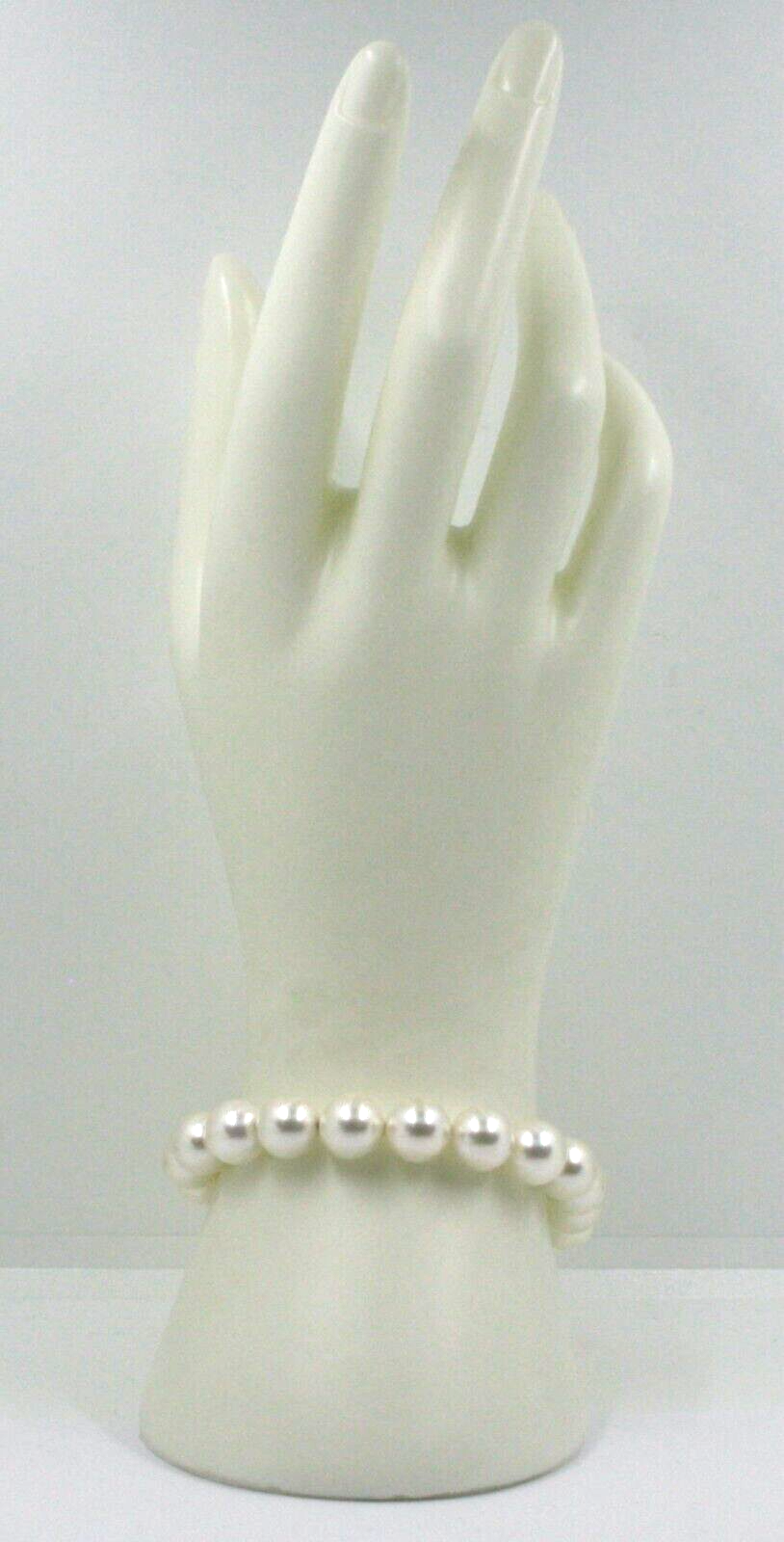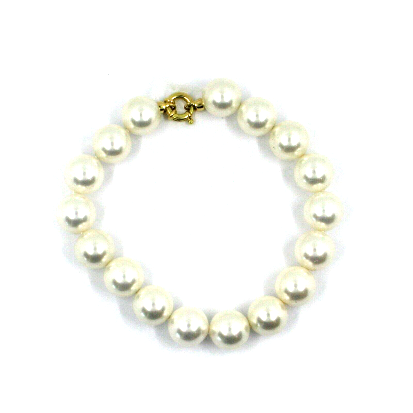 con grandes perlas sintéticas blancas de 10,5 mm.