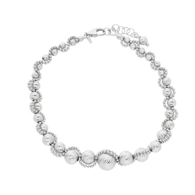 Bracelet en or blanc 18 carats sphères travaillées de 19 cm boules taillées en diamant de 4 mm