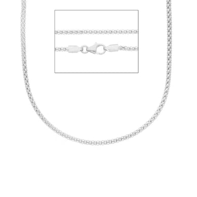 CHAÎNE EN OR BLANC 18 CARATS PETIT PANIER MAILLON RONDE POP-CORN 2 MM LARGEUR 19,69 PO