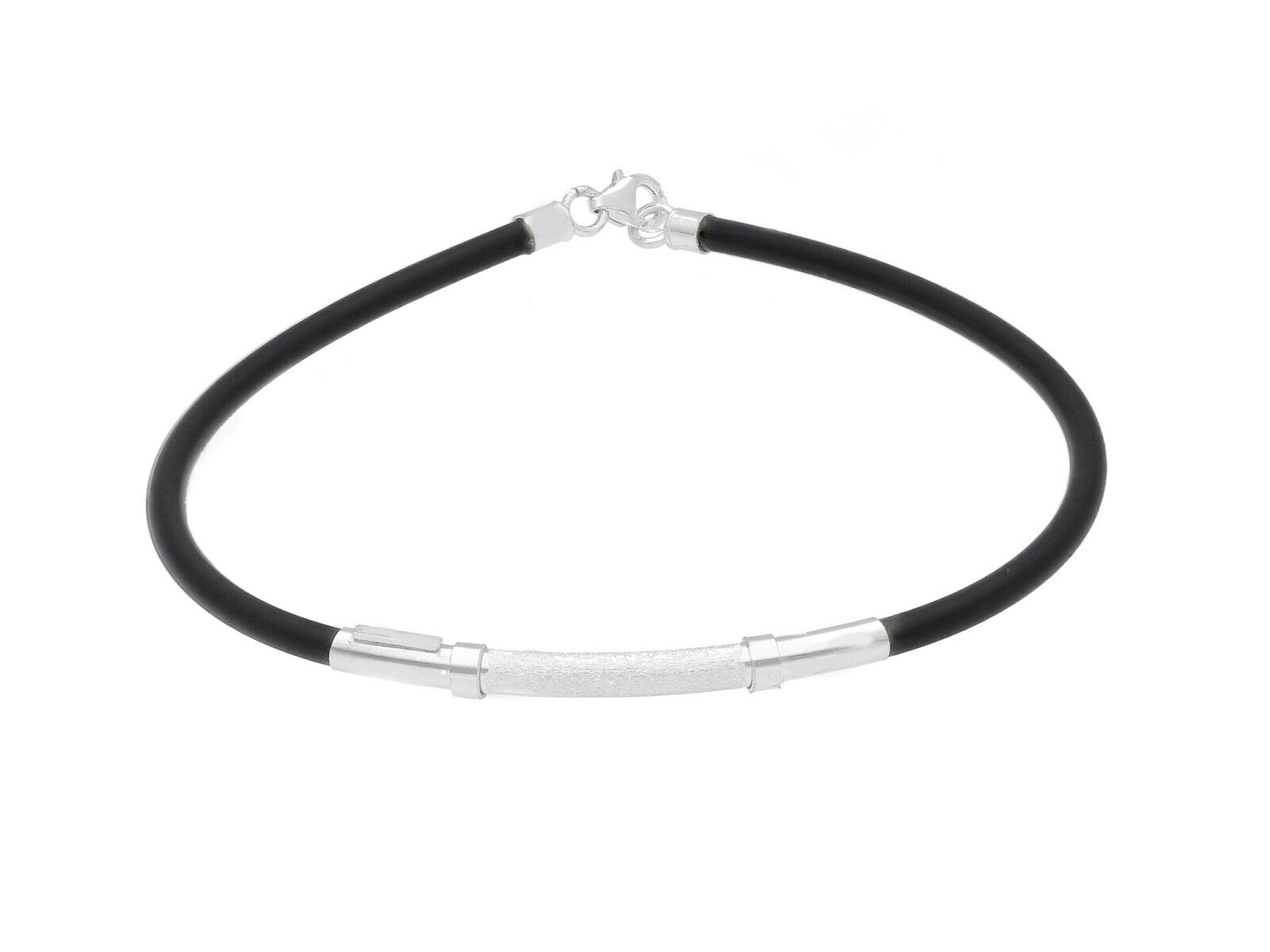 Bracelet en or blanc 18 carats, tube rond de 3 mm, plaqué satiné lisse et caoutchouc noir, 8,3"