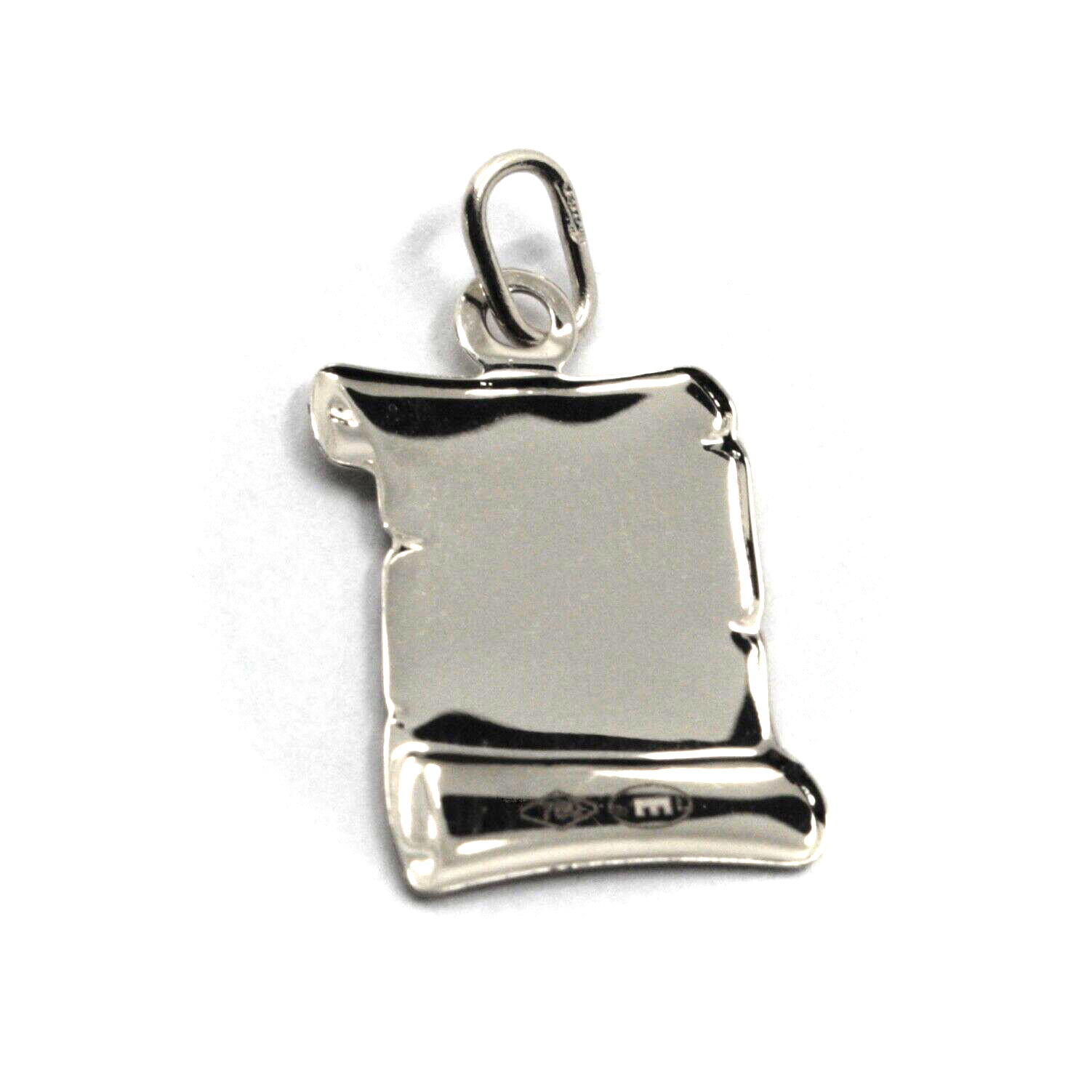 18k white gold parchment medal pendant, 18mm zodiacal sign gemini smooth & satin.