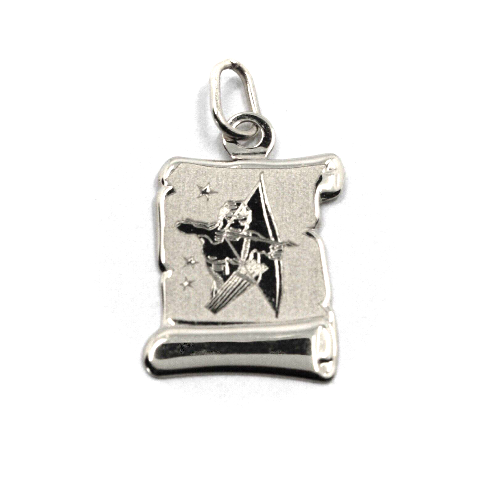 18k white gold parchment medal pendant length 18mm zodiacal sign sagittarius.