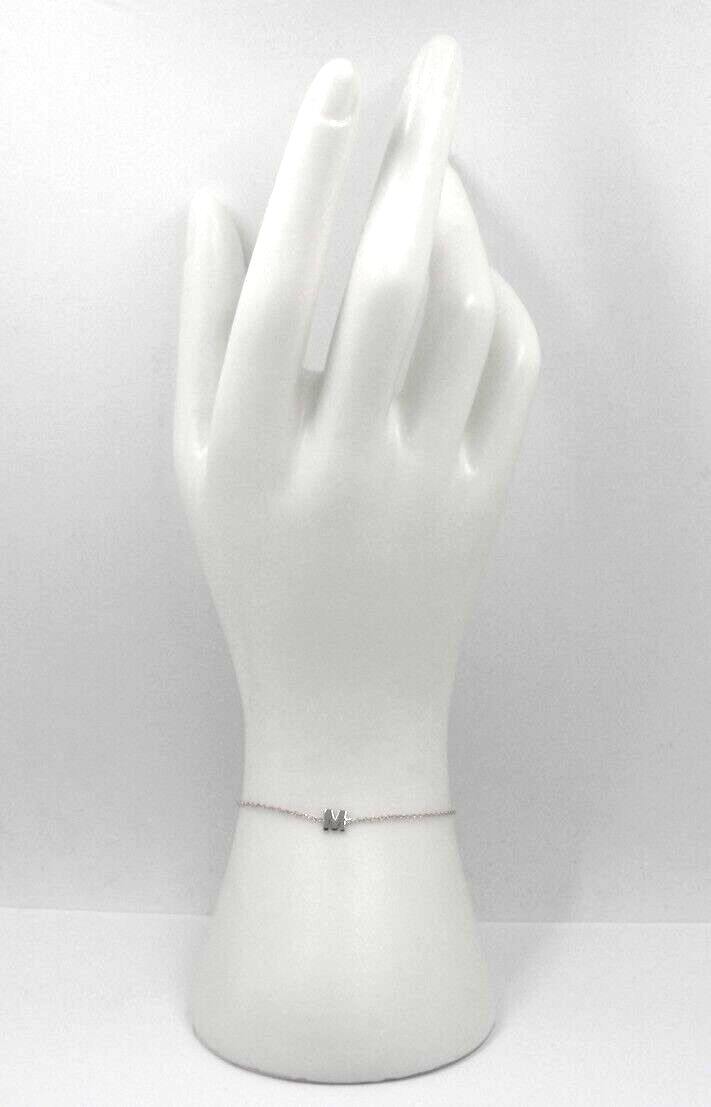 18k white gold rolo thin bracelet with central small 5mm letter initial M.