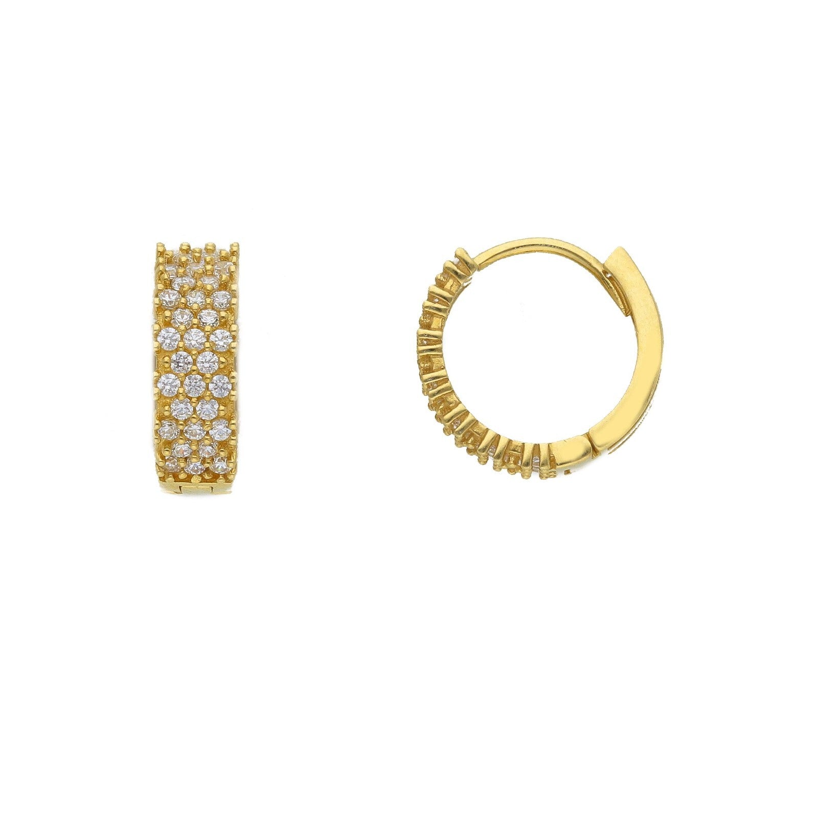 18k yellow gold hoops circle 14mm earrings, 5mm thickness, five zirconia rows