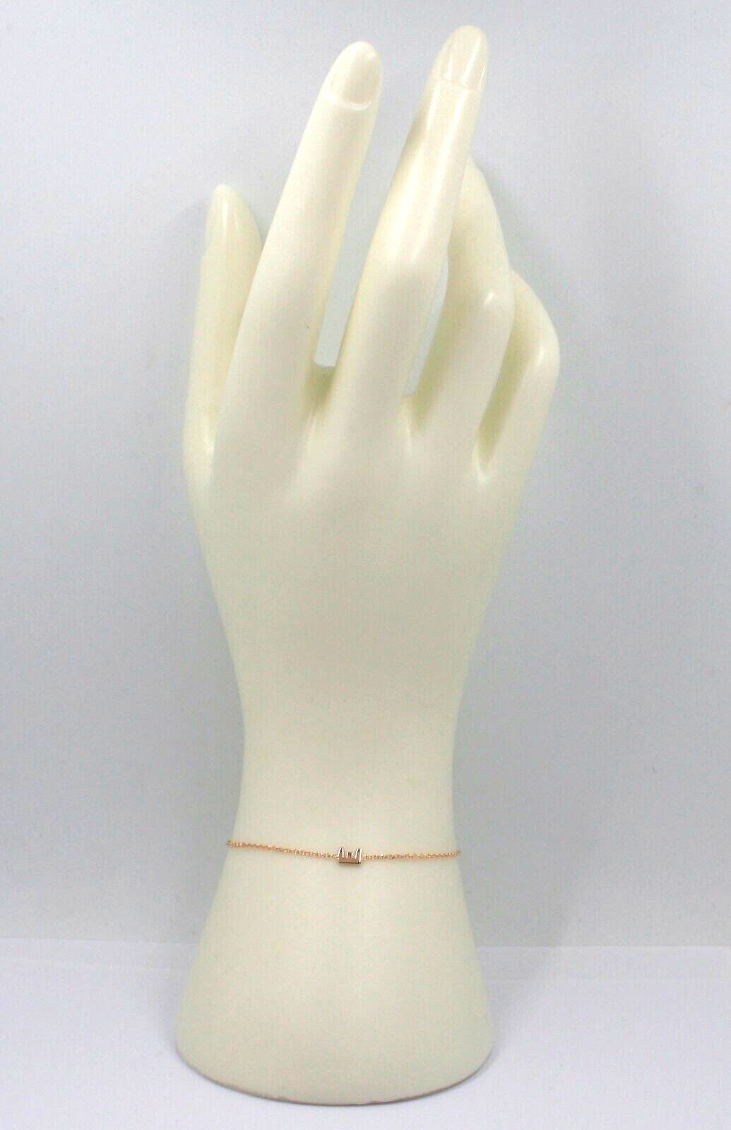 18k rose gold rolo thin bracelet with central small 5mm letter initial E.