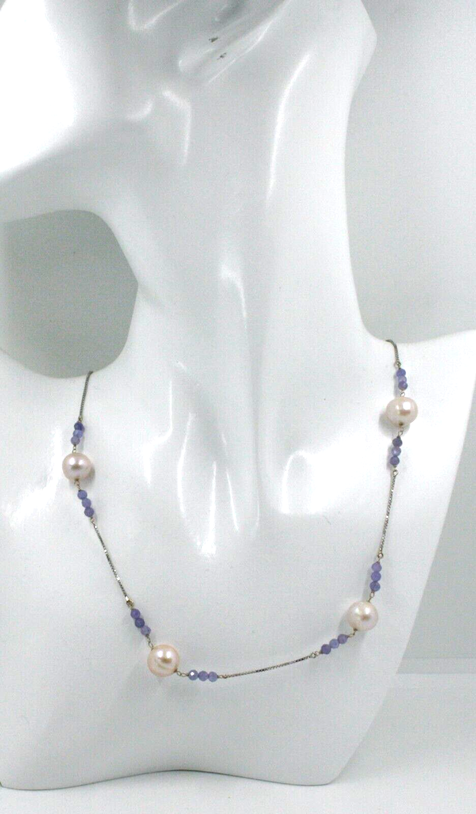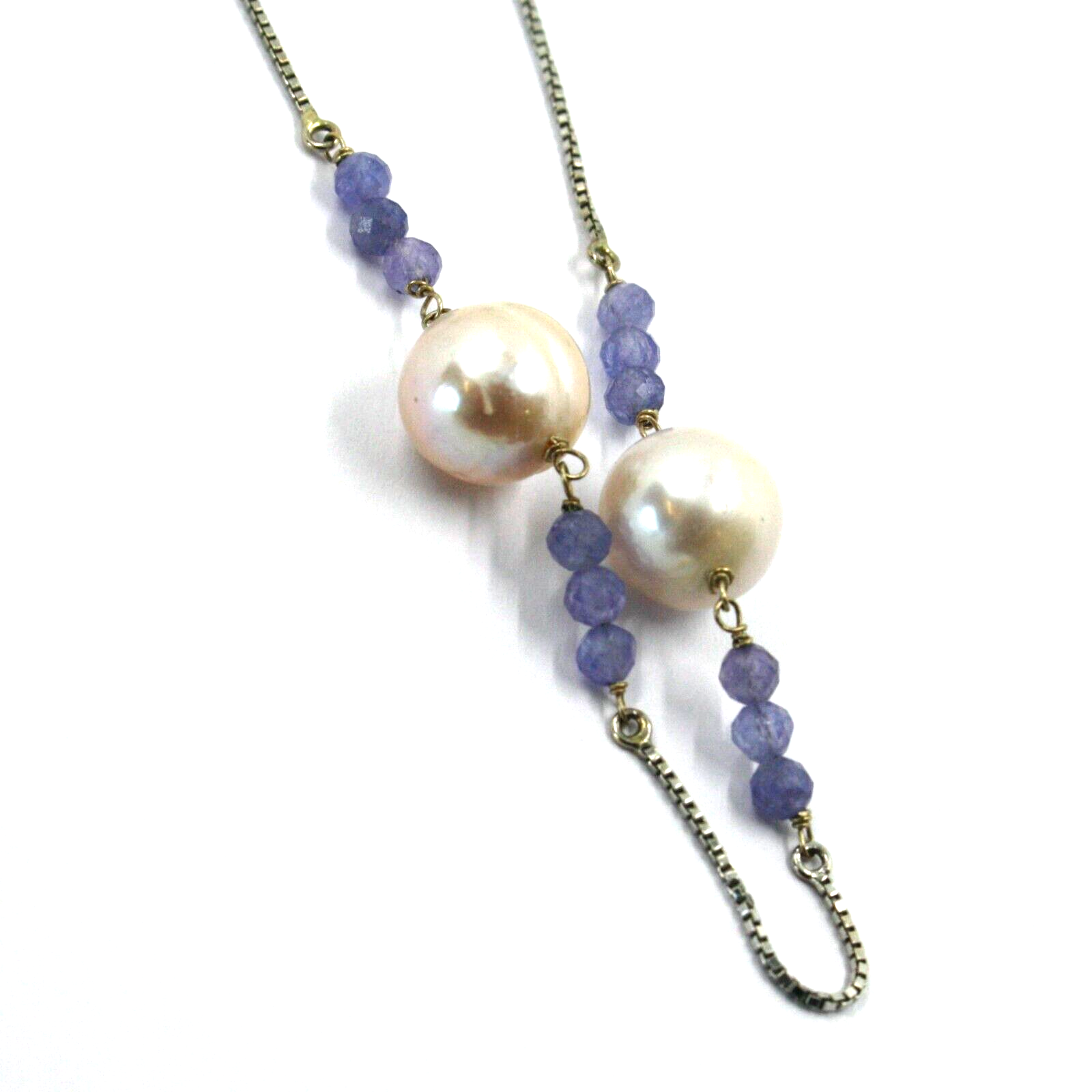with 10mm pink freshwater pearls and blue faceted 3.5mm tanzanite
