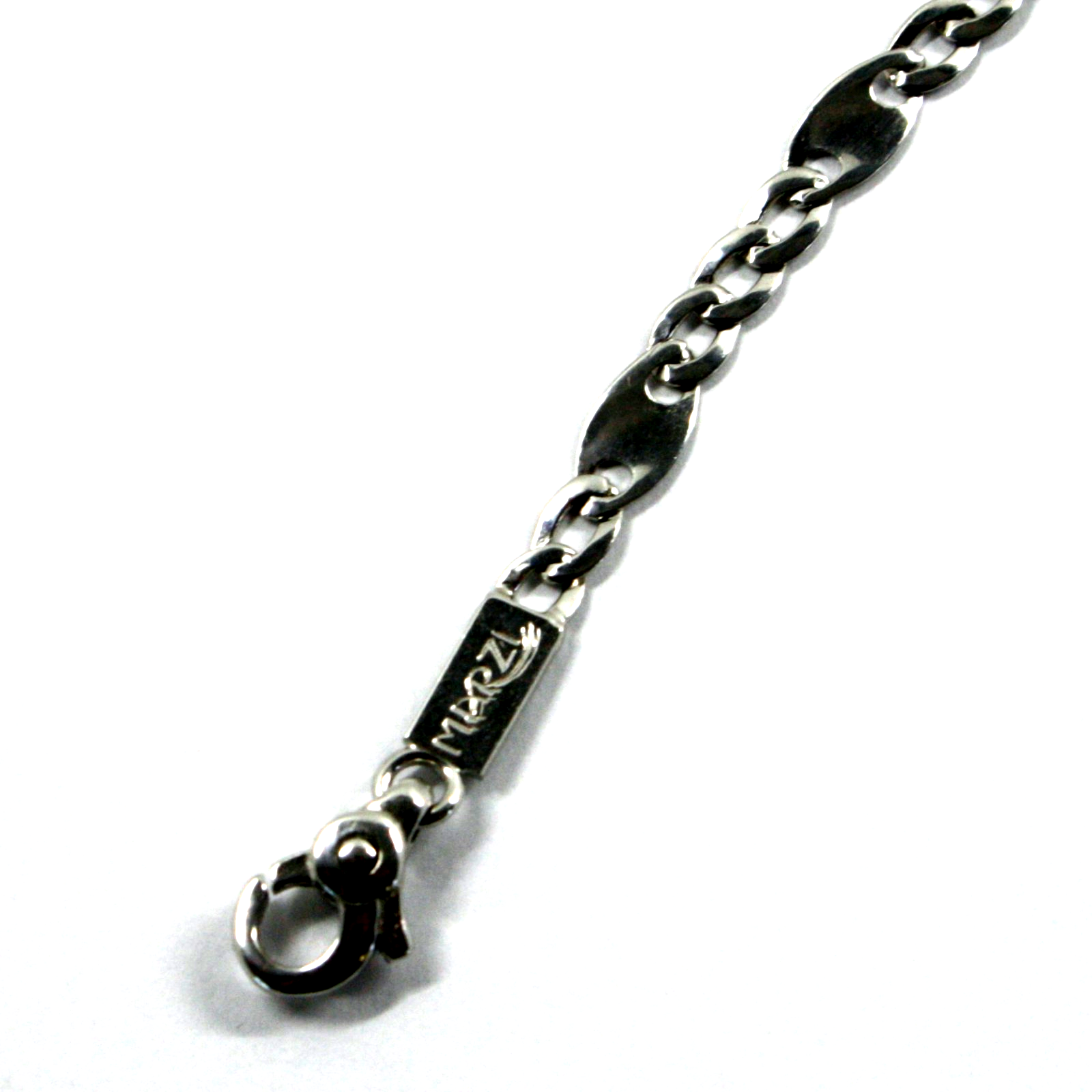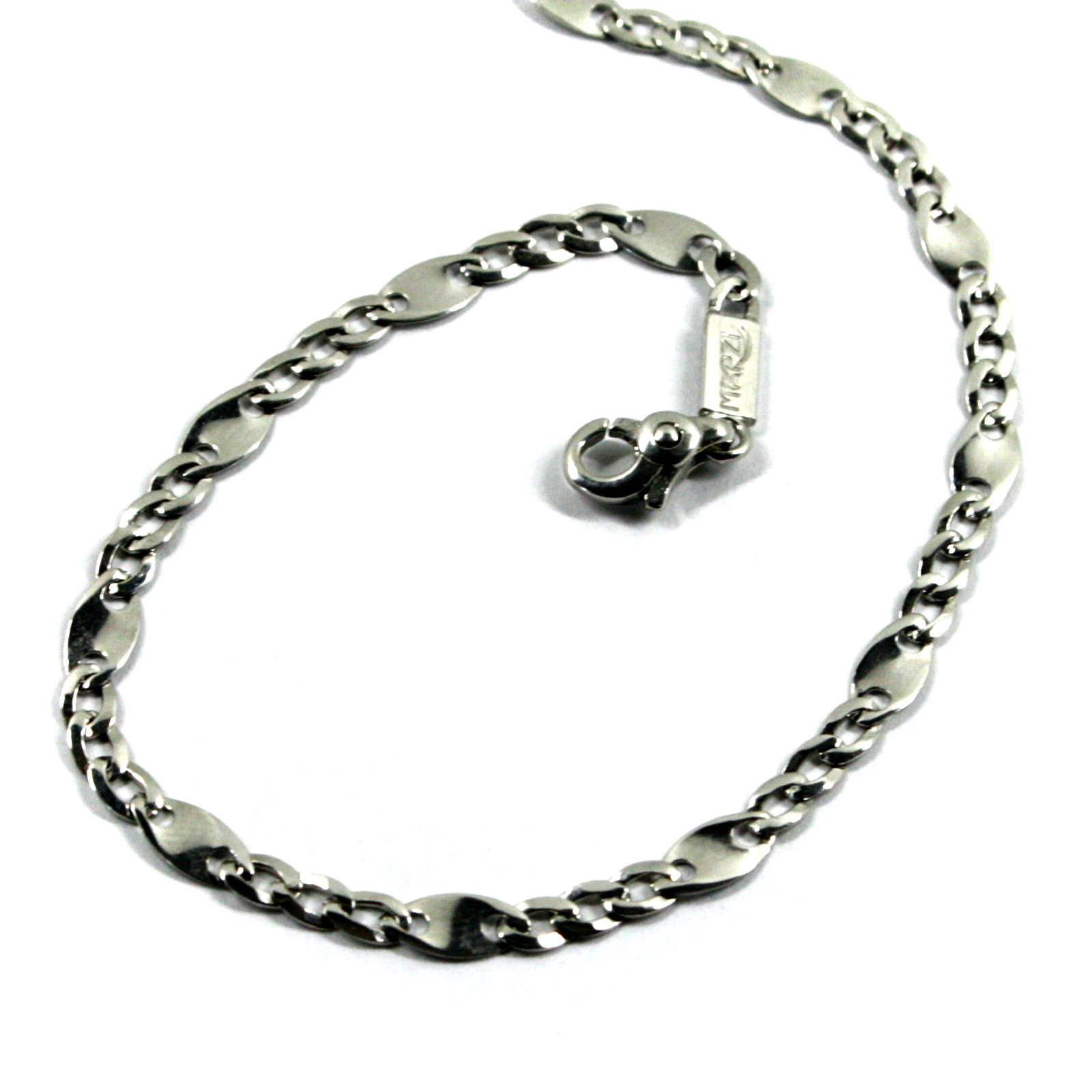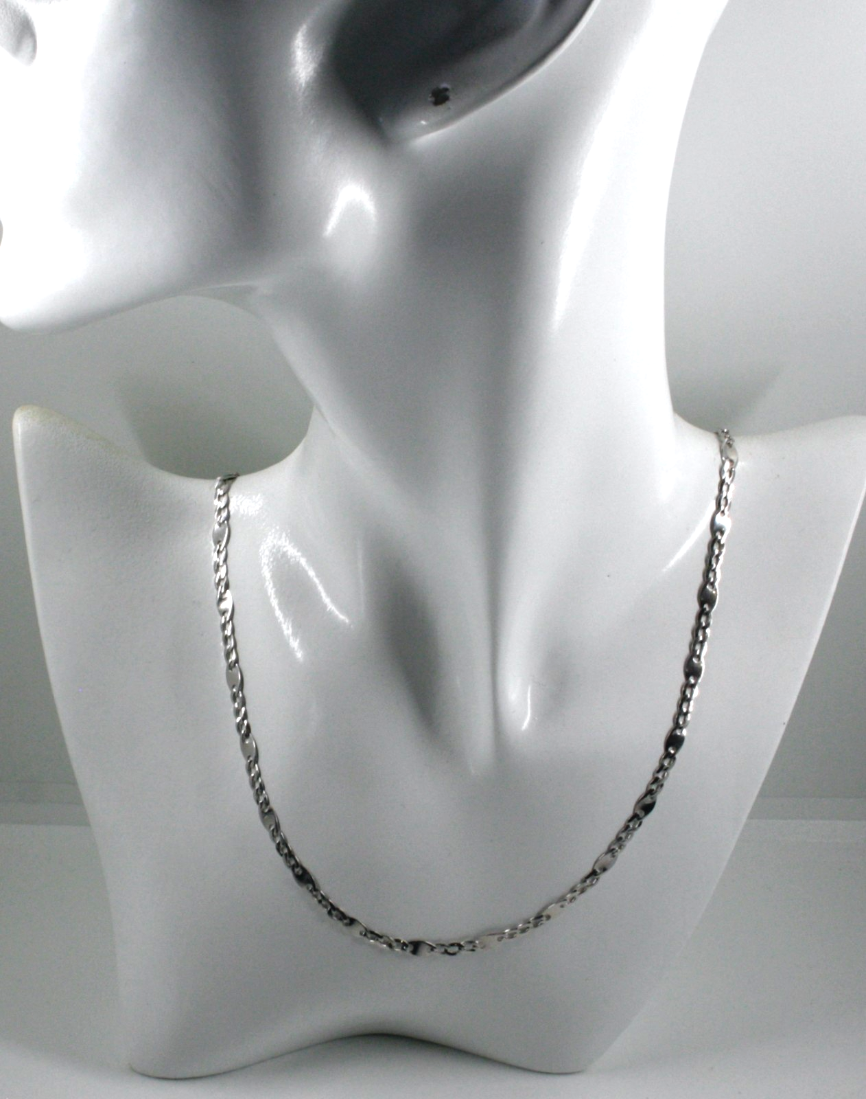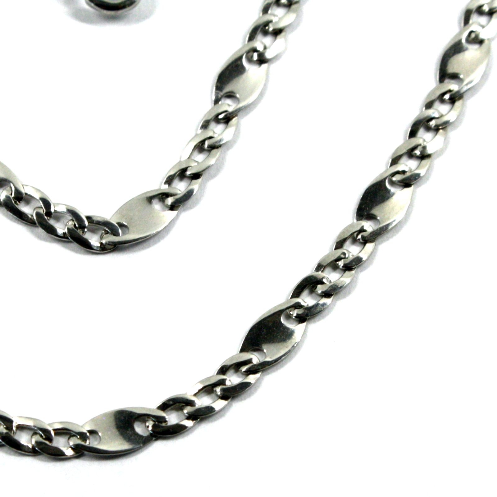 18k white gold flat solid chain 3+1 ondulate alternate 3-4mm ovals, length 19.7"