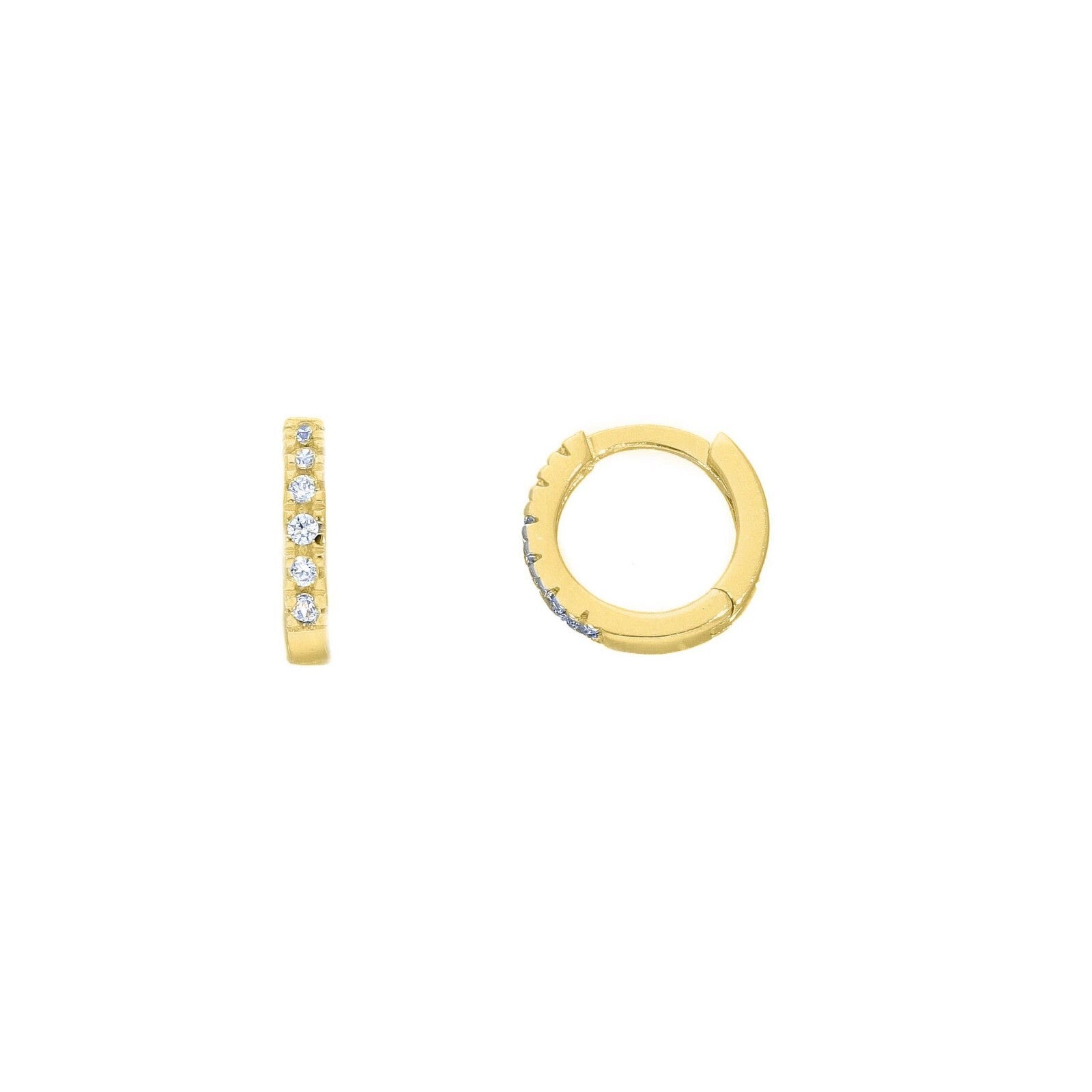 18k yellow gold hoops small 10mm earrings square tube thickness 2mm, zirconia