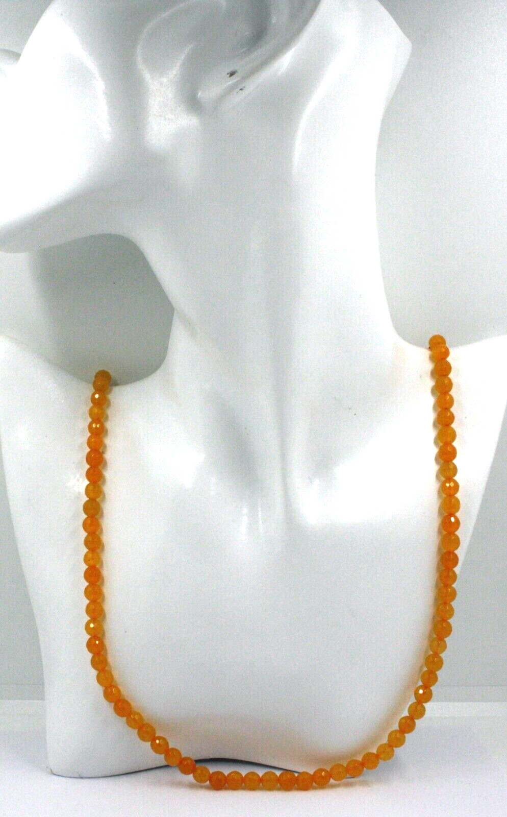 18k yellow gold necklace 24", orange jade round faceted 6mm beads spheres balls