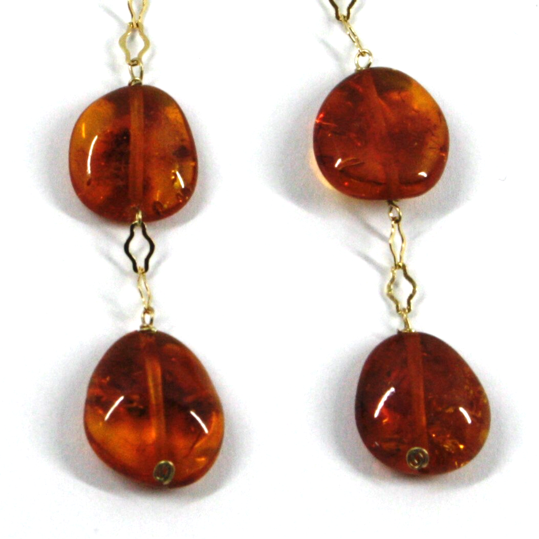 18k yellow gold pendant 55mm earrings with double flat orange amber drops