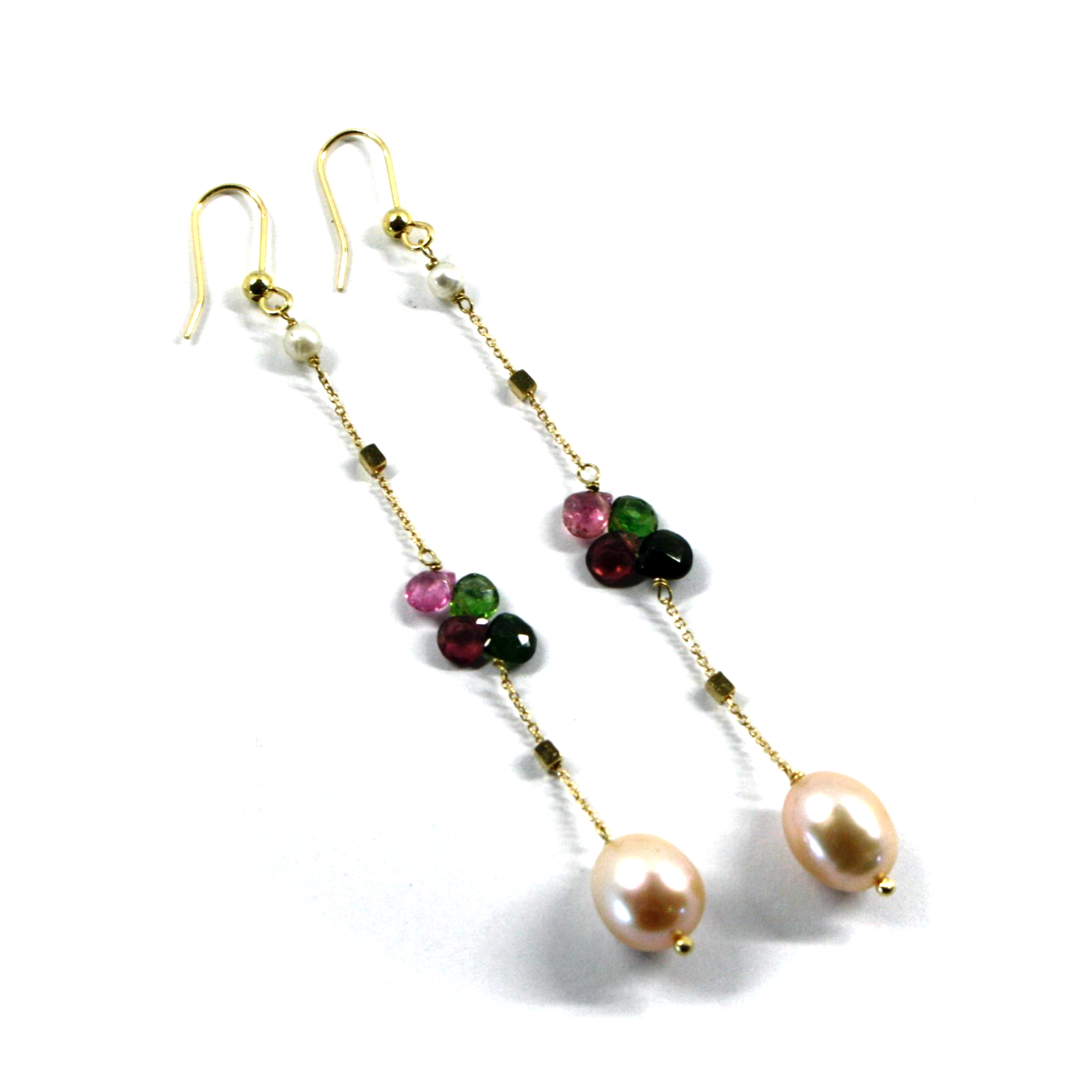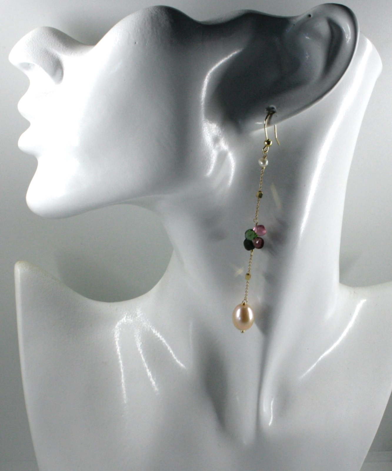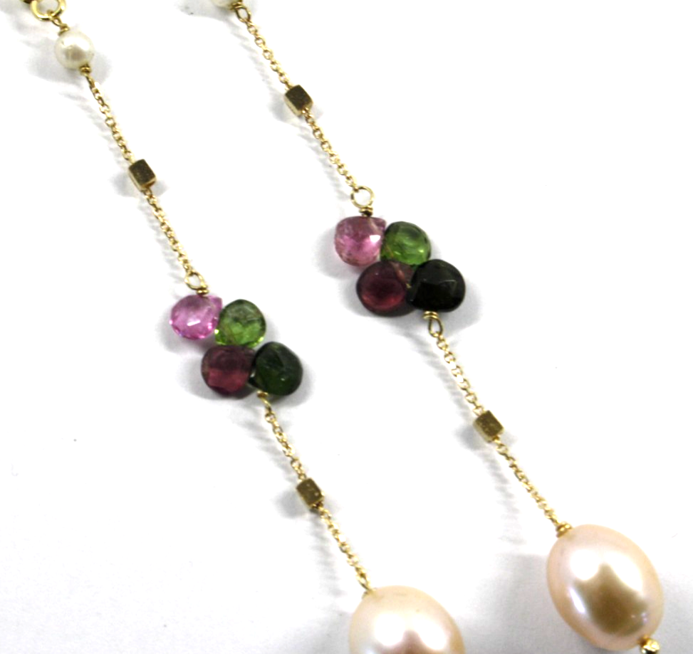 18k yellow gold pendant long 9cm earrings drop purple green tourmaline & pearls