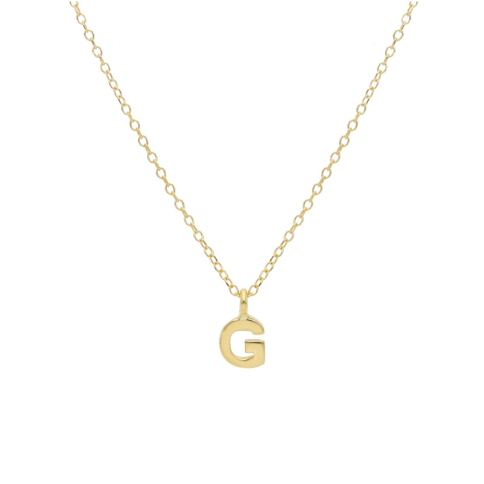 18k yellow gold rolo thin 16" necklace with small 5mm letter initial G
