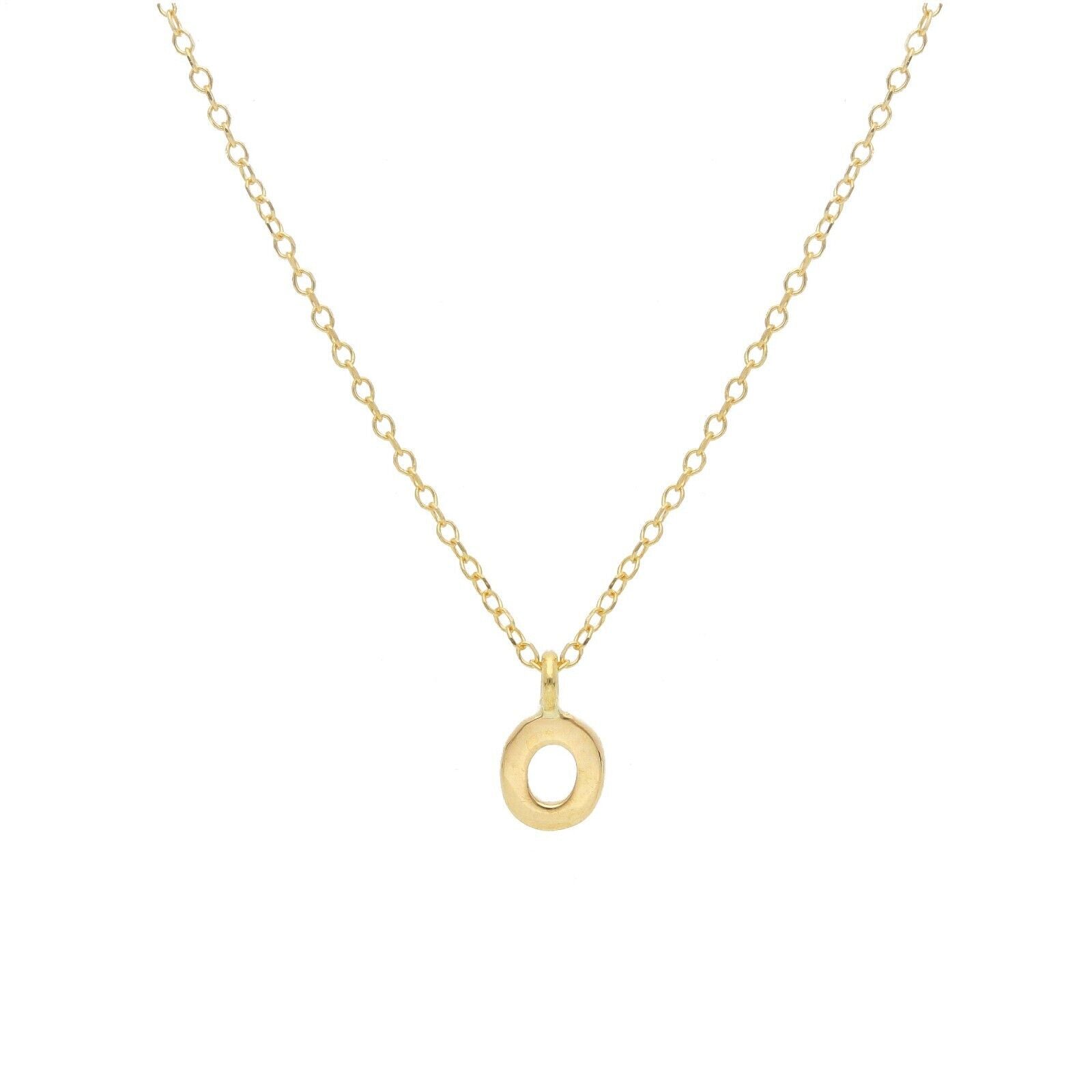 18k yellow gold rolo thin 16" necklace with small 5mm letter initial O
