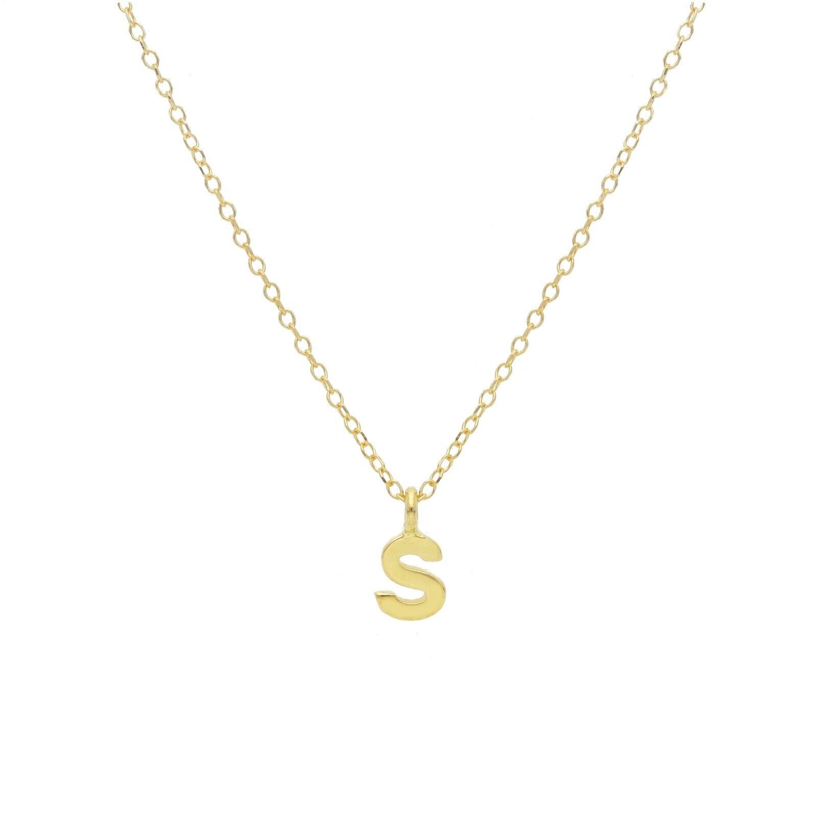 18k yellow gold rolo thin 16" necklace with small 5mm letter initial S