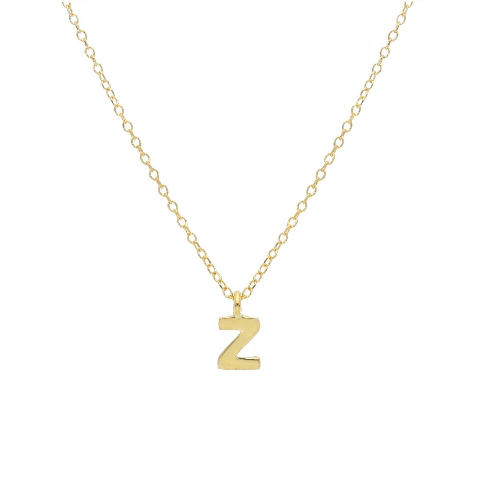18k yellow gold rolo thin 16" necklace with small 5mm letter initial Z