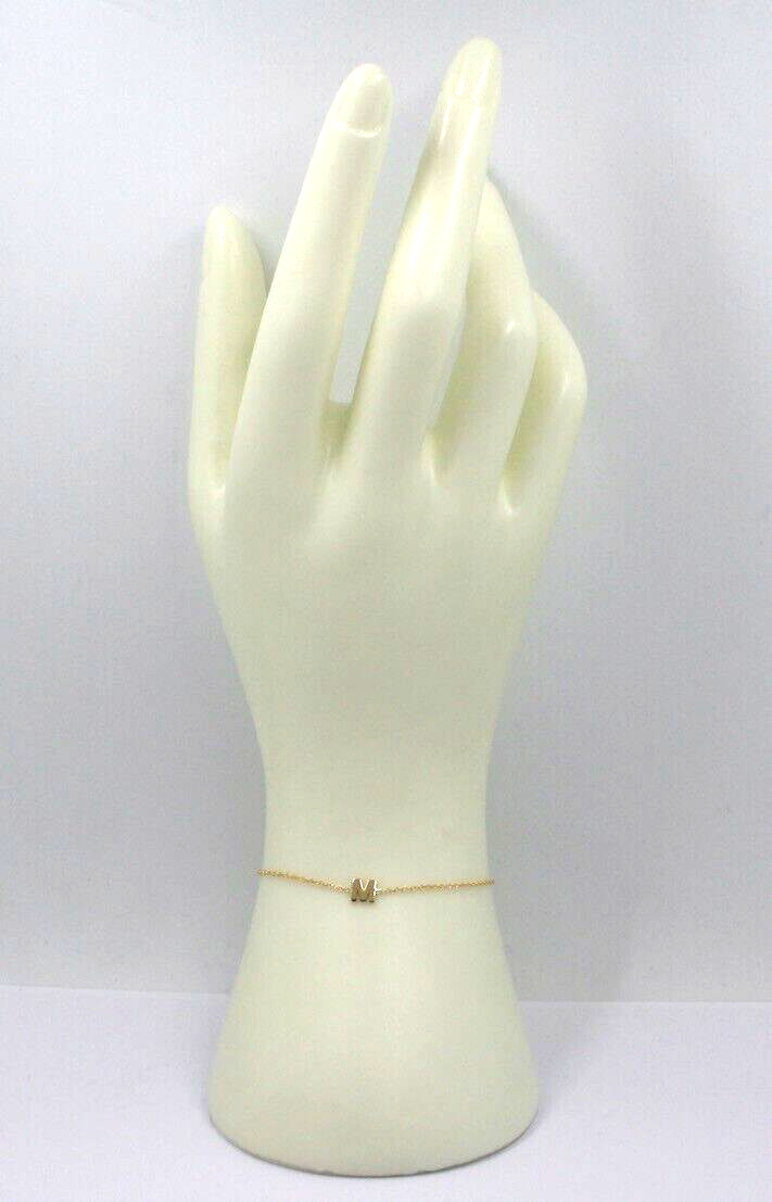 18k yellow gold rolo thin bracelet with central small 5mm letter initial M.