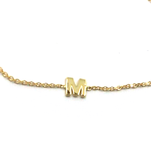 18k yellow gold rolo thin bracelet with central small 5mm letter initial M