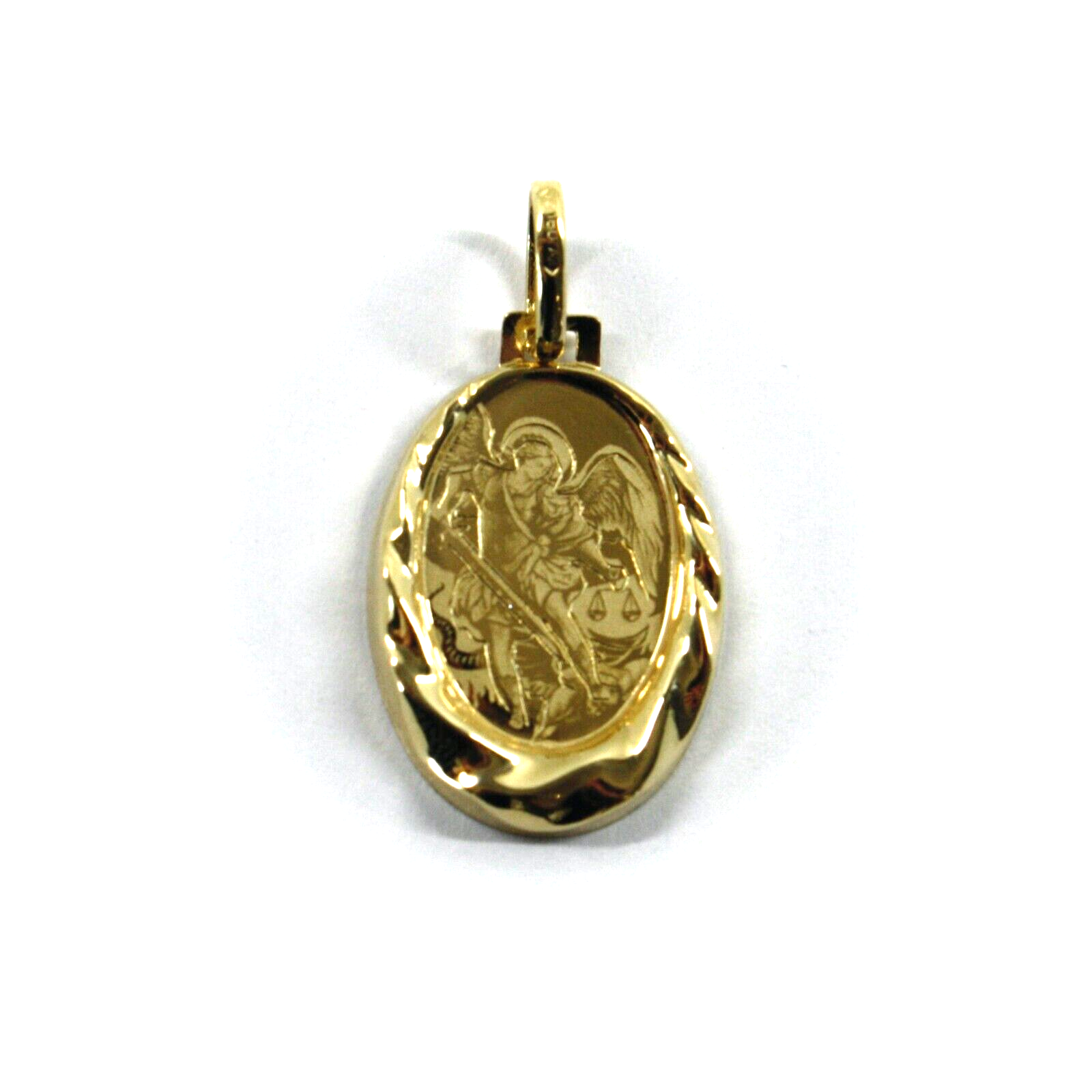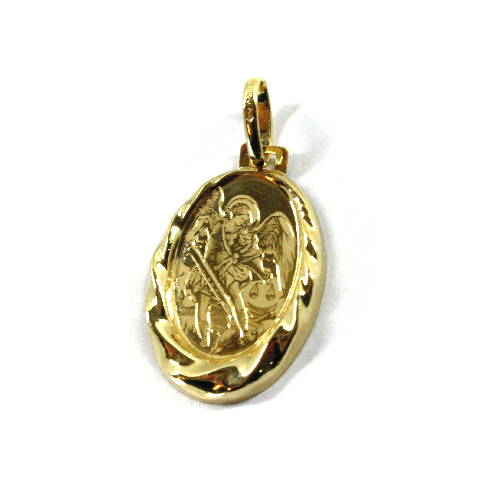 18k yellow gold Saint Michael Archangel 20mm oval medal pendant ondulate frame