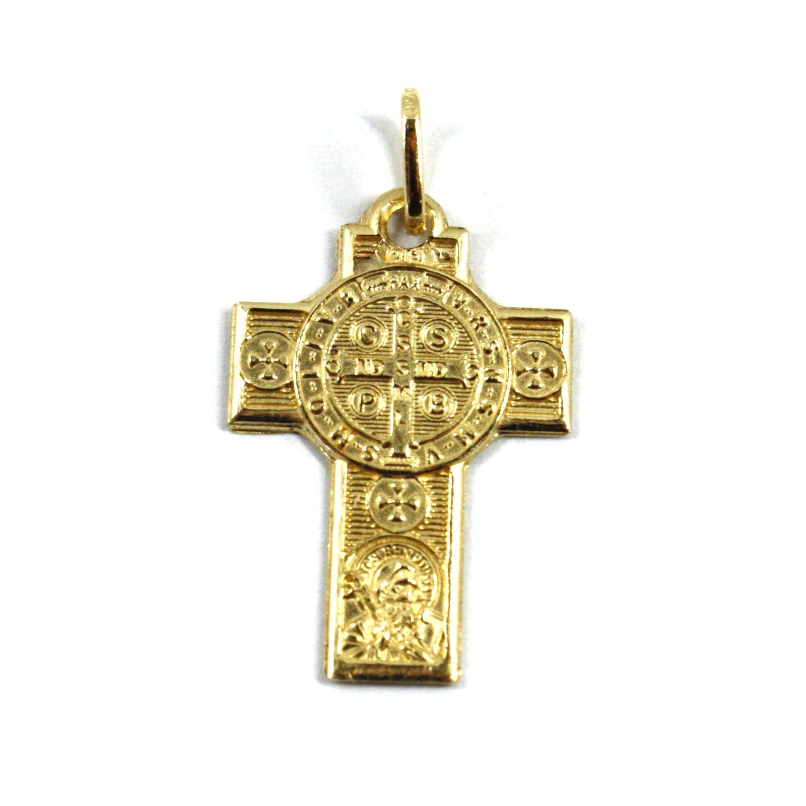 18k yellow gold small 22mm flat Cross with Saint Benedict medal, very detailed