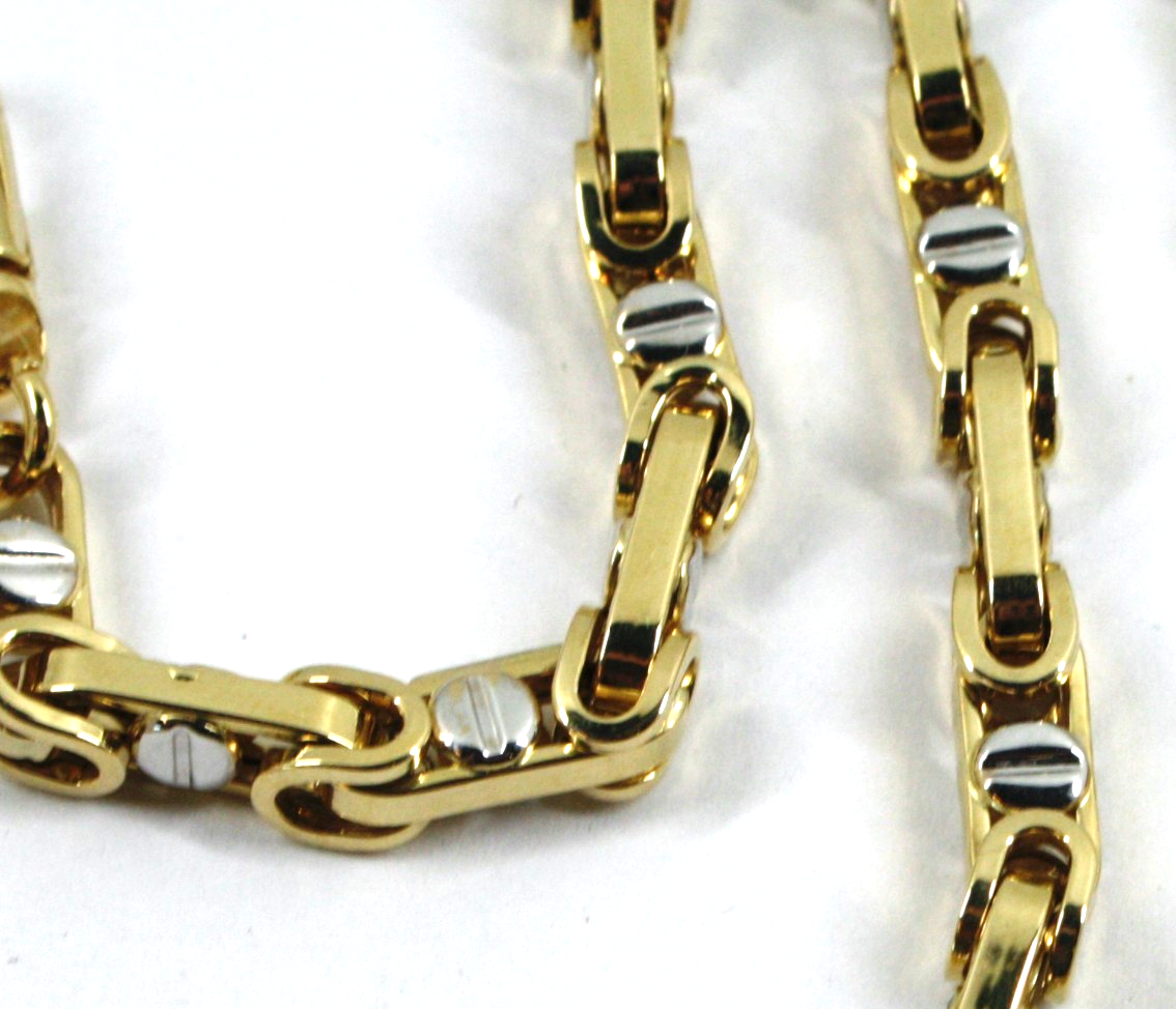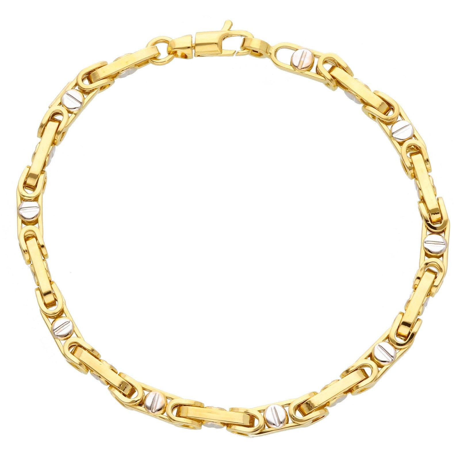 18k yellow white gold bracelet 4.5mm rounded oval byzantine central button 8.3"
