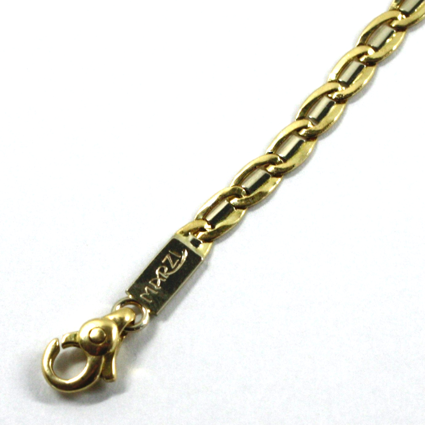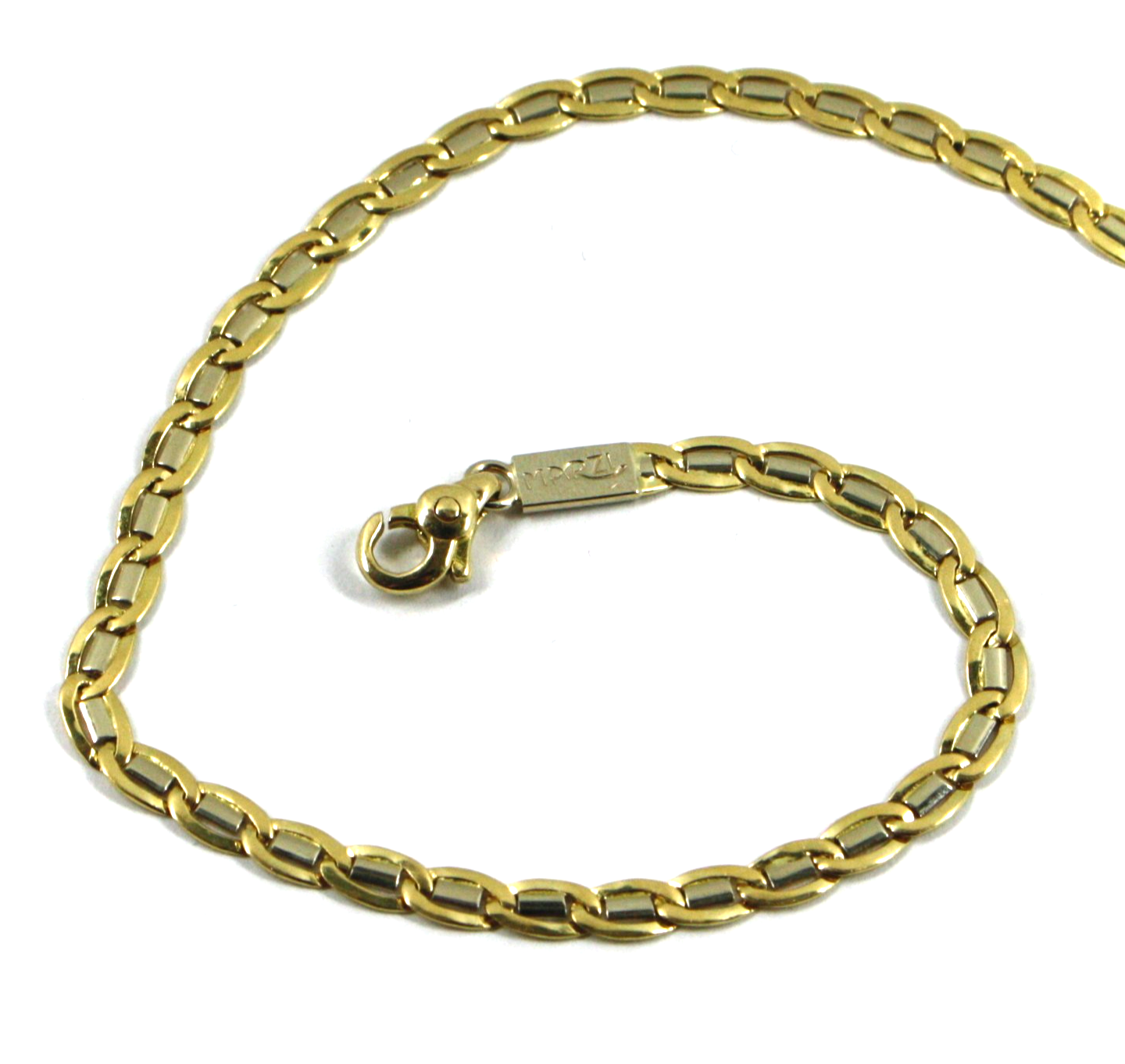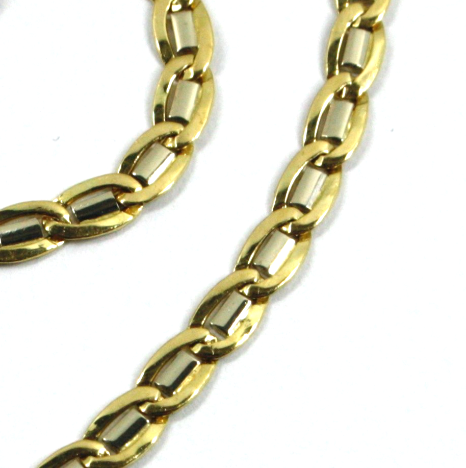 18k yellow white gold flat solid bracelet 4mm ovals, length 8.3" 21cm Italy made