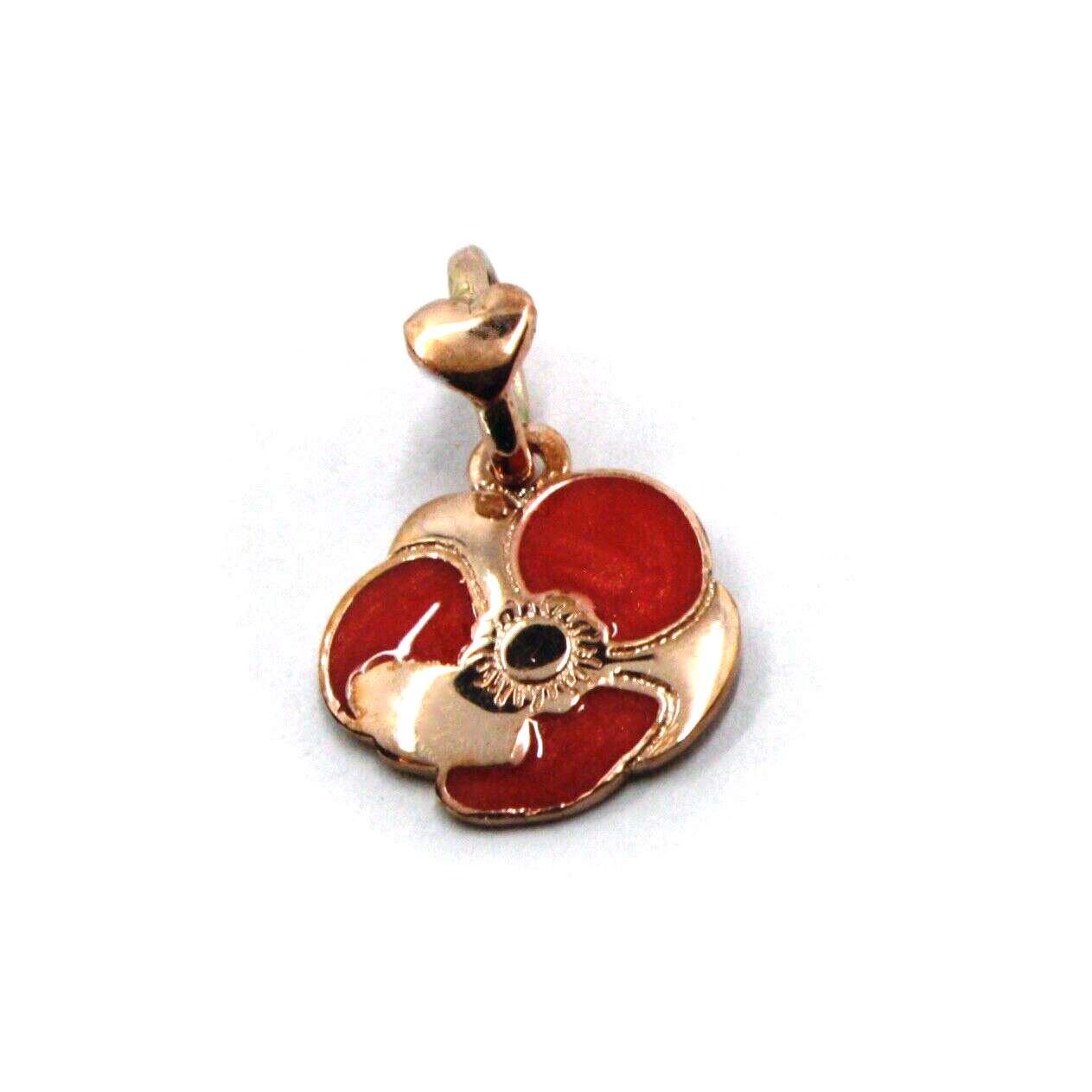 9K ROSE GOLD SMALL 12mm POPPY FLOWER DODO MARIANI ENAMEL PENDANT, ITALY MADE