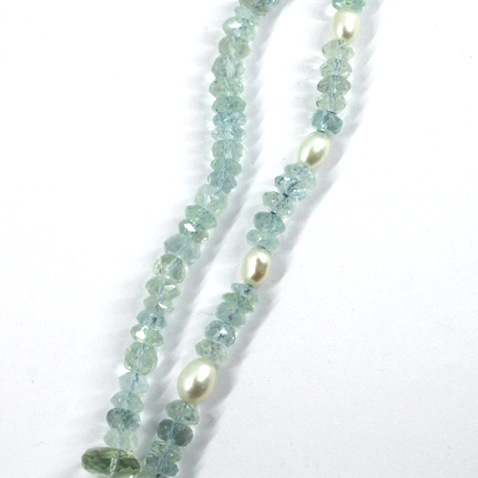 . Stones: aquamarine diameter 5 mm, peridot diameter 10 mm, freshwater oval white pearls length 7-10 mm