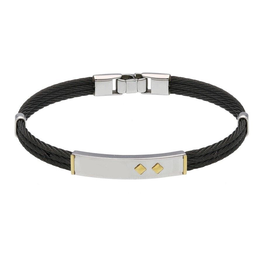 BANGLE BRACELET 8mm TRIPLE STAINLESS STEEL ROPE CABLE AND PLATE 18K GOLD INSERTS