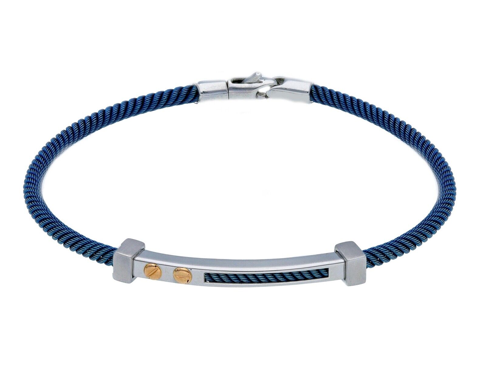 BRACELET 4mm STAINLESS STEEL BLUE ROPE BRAIDED CABLE, PLATE, 18K GOLD INSERTS
