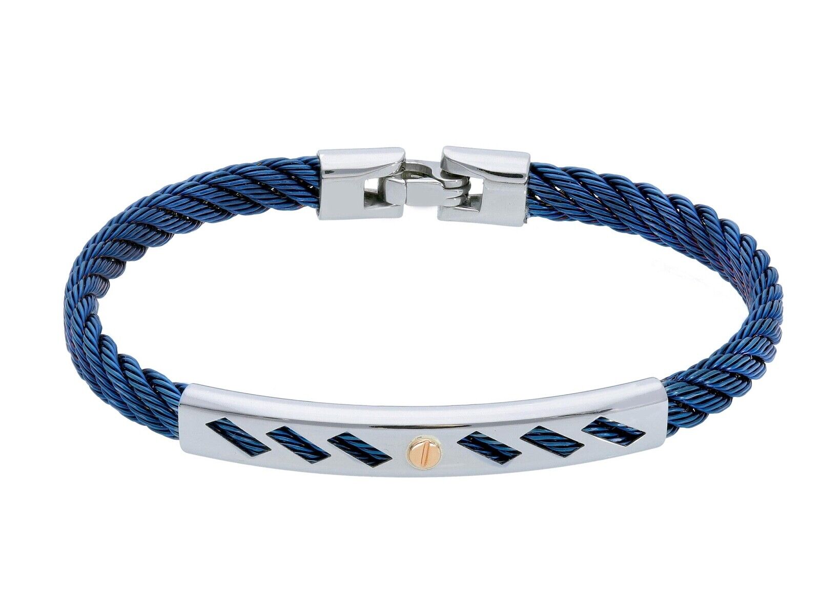 BRACELET 6mm BLUE ROPE BRAIDED CABLE, STAINLESS STEEL PLATE, 18K GOLD INSERT