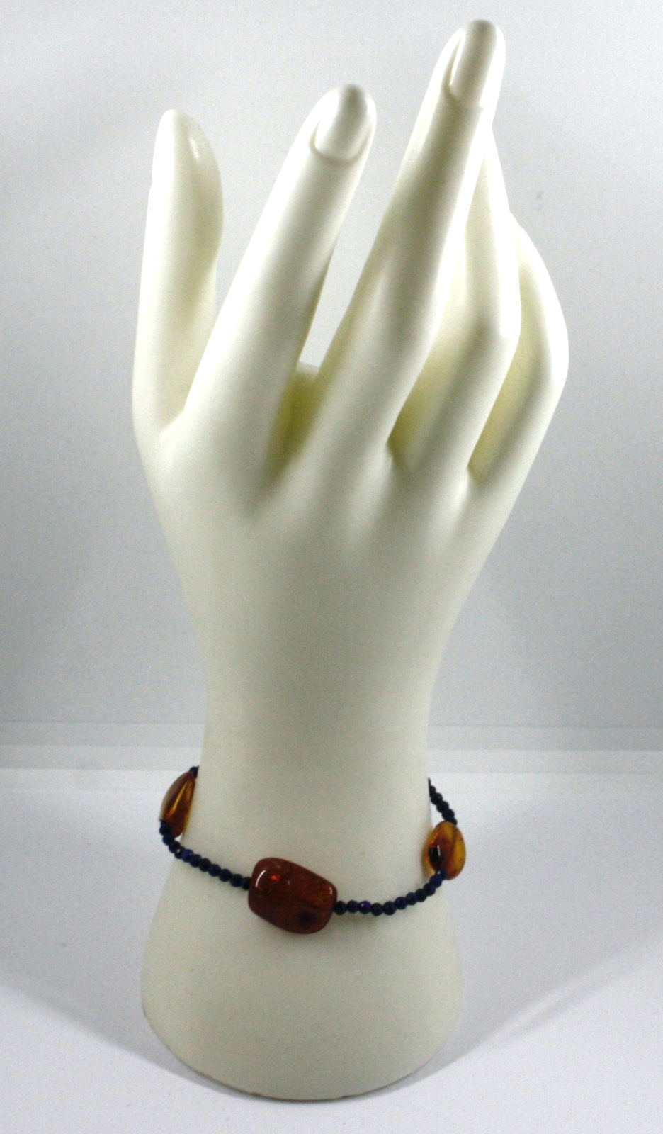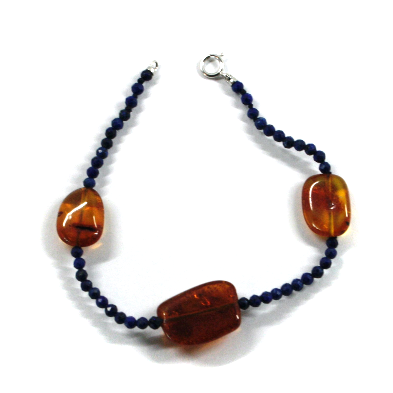 BRACELET with 3mm blue faceted lapis lazuli spheres and 13-17mm amber nuggets