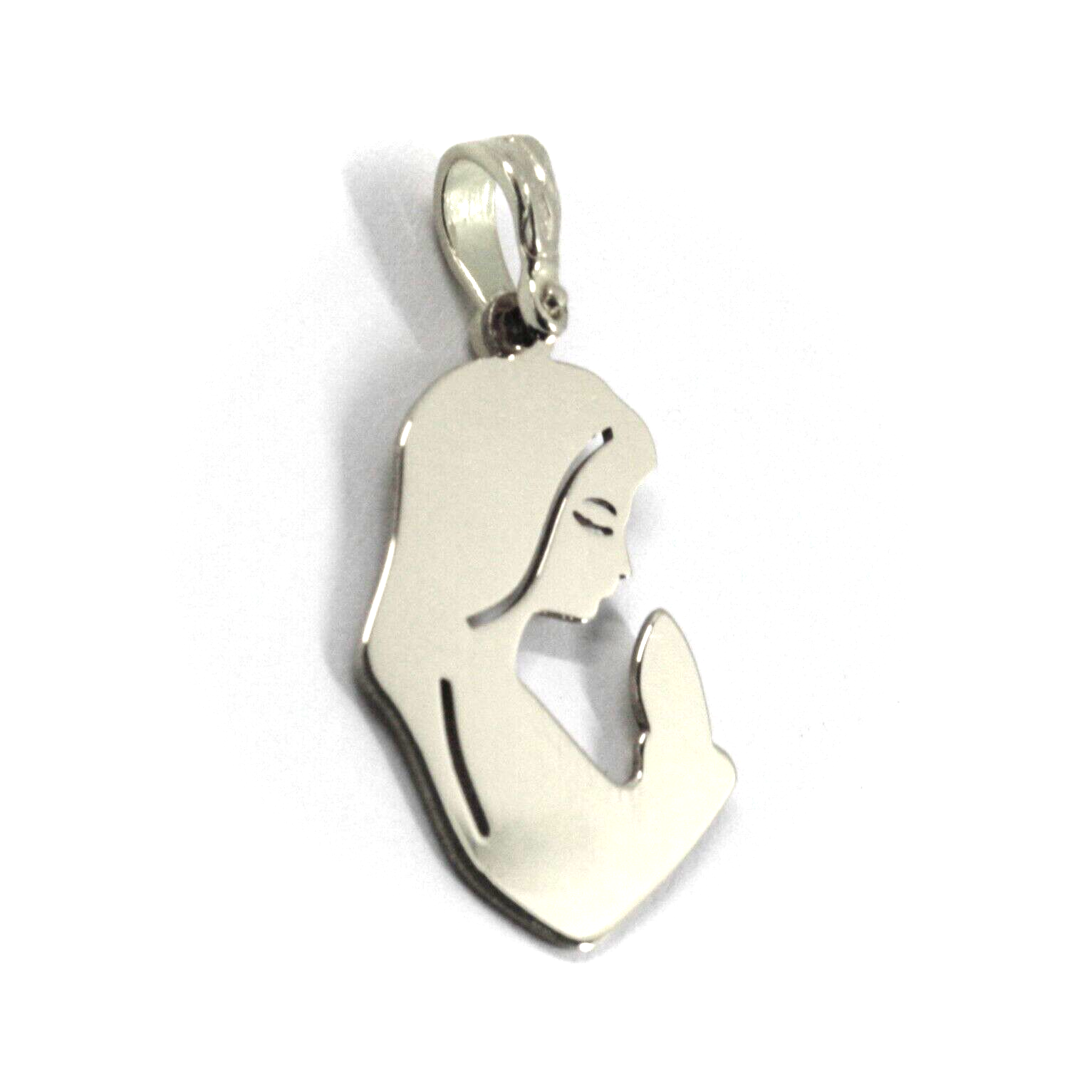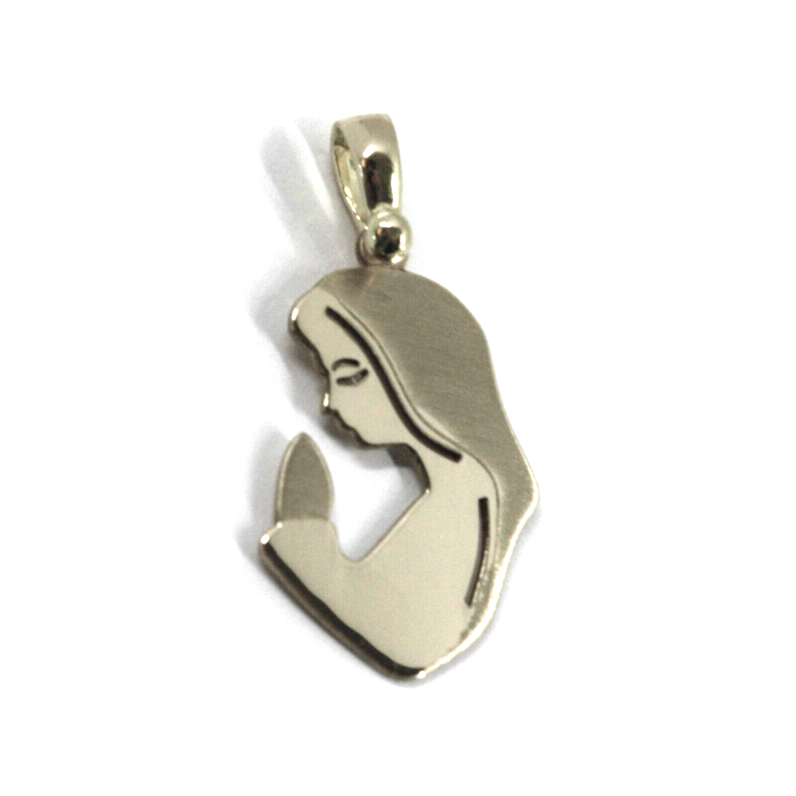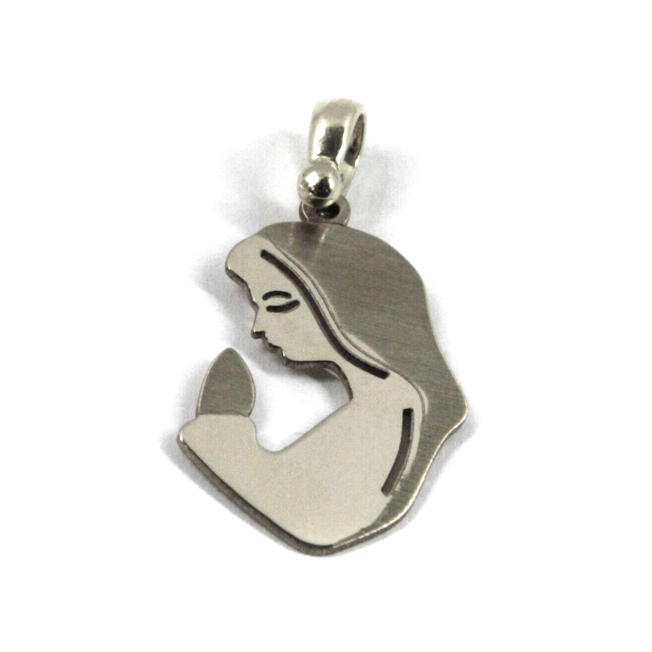 Solid 18k white gold 20mm smooth and satin flat pendant Virgin Mary, Italy made