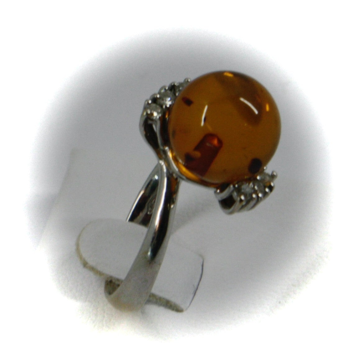 . Stone: Amber diameter 10mm and 6 Diamonds, total carats 0.12, color G, clarity vvs