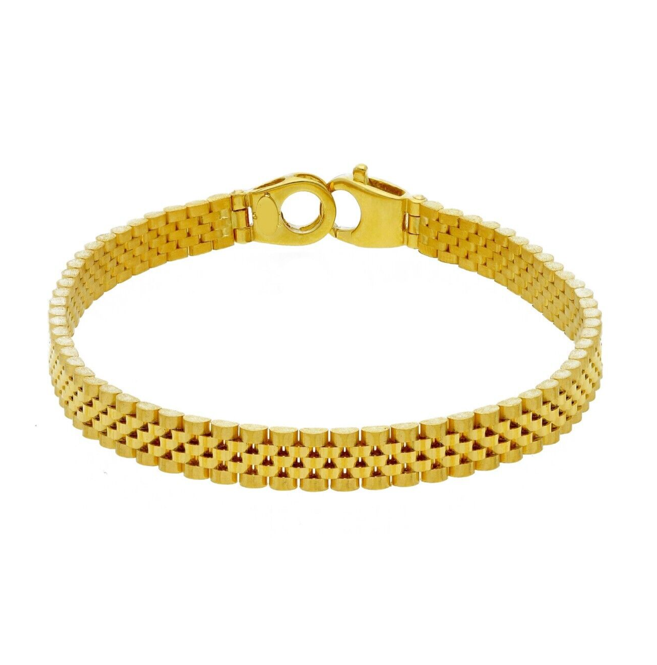 The bracelet has printed the mark of the gold fineness 750 (it is the equivalent of 18k) and that of the producer.