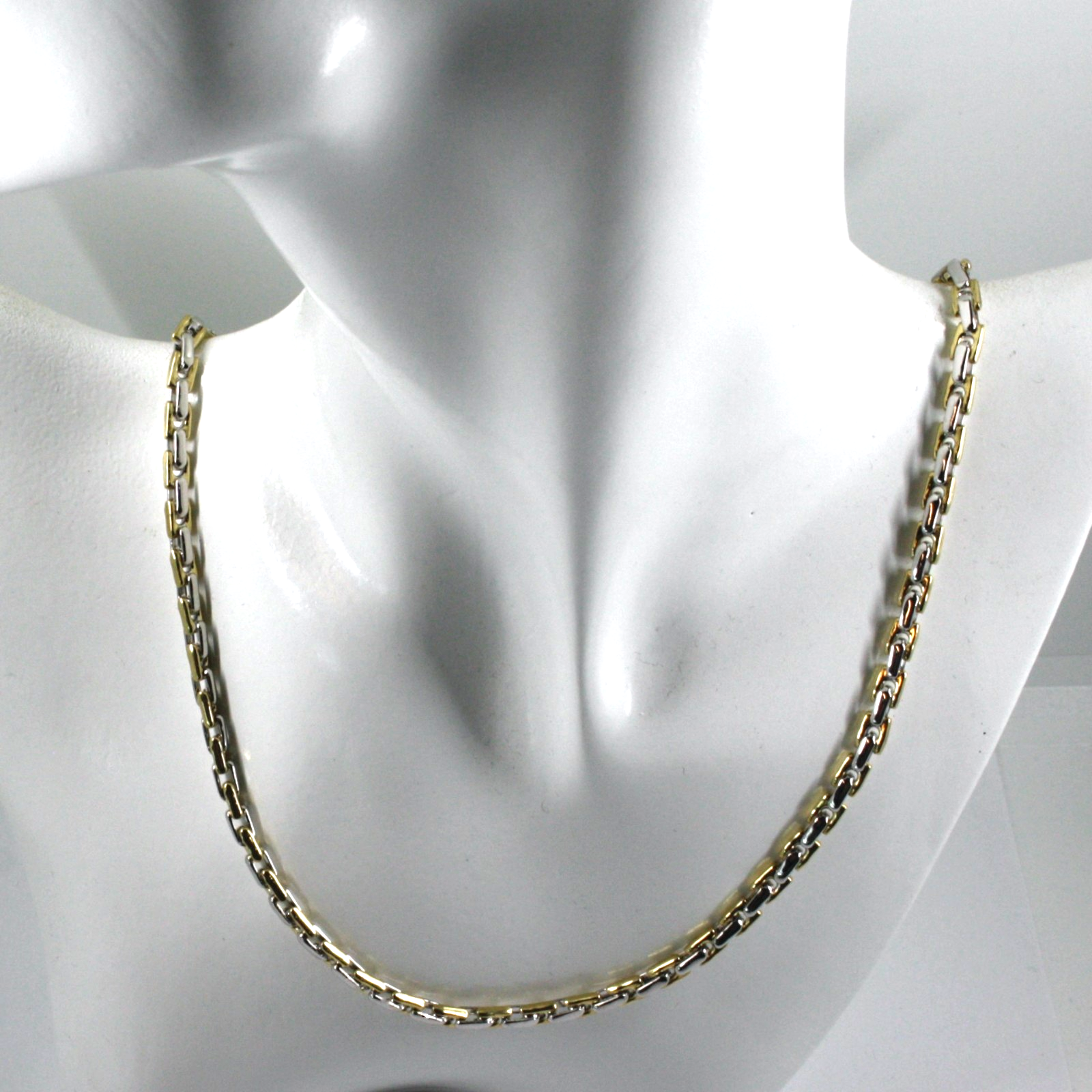Solid 18k yellow white gold 19.6" chain square tubular alternate 4.2mm links