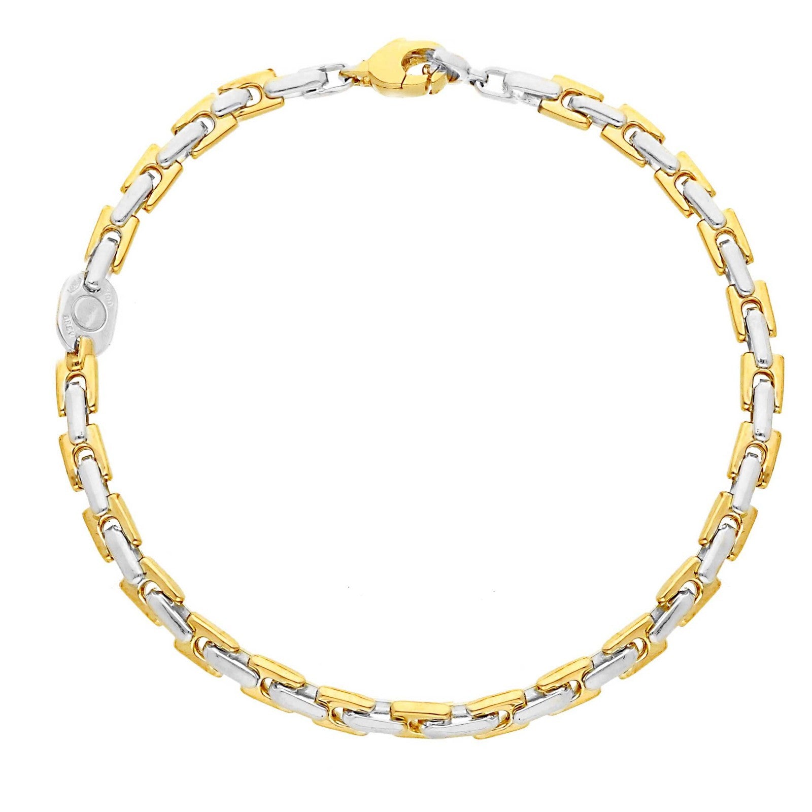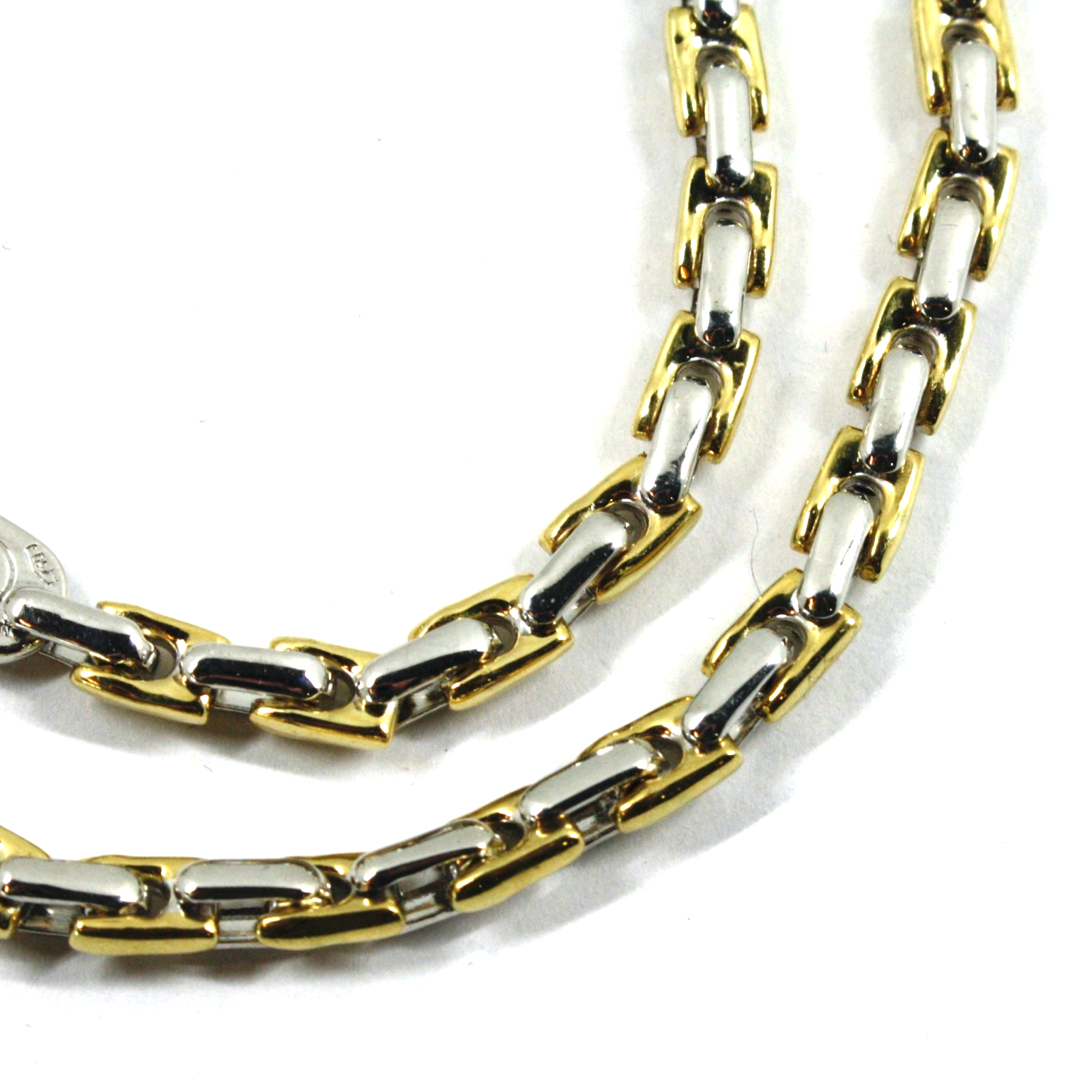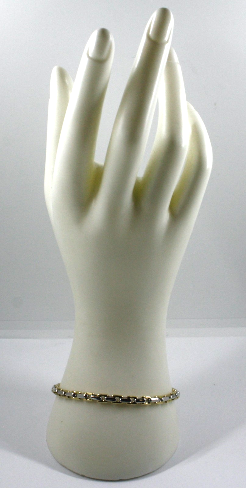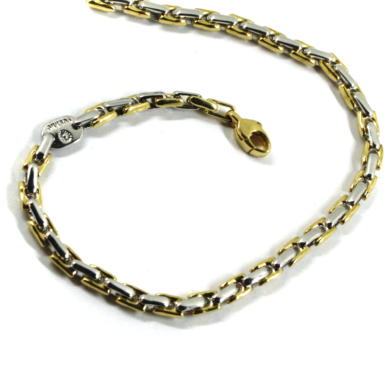 Solid 18k yellow white gold 8.3" bracelet square tubular alternate 4.2mm links