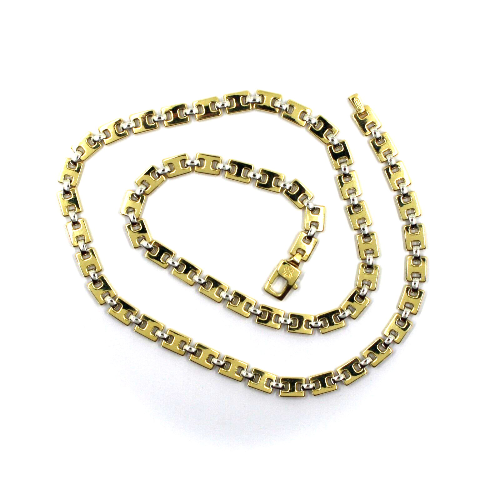 The necklace has printed the hallmark of the gold fineness 750 (it is the equivalent of 18k) and that of the producer.