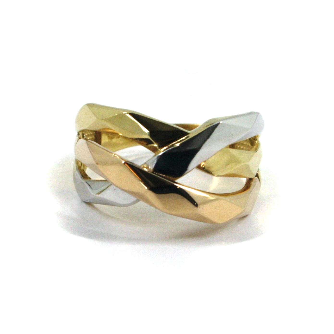 18K YELLOW, WHITE AND ROSE GOLD RING