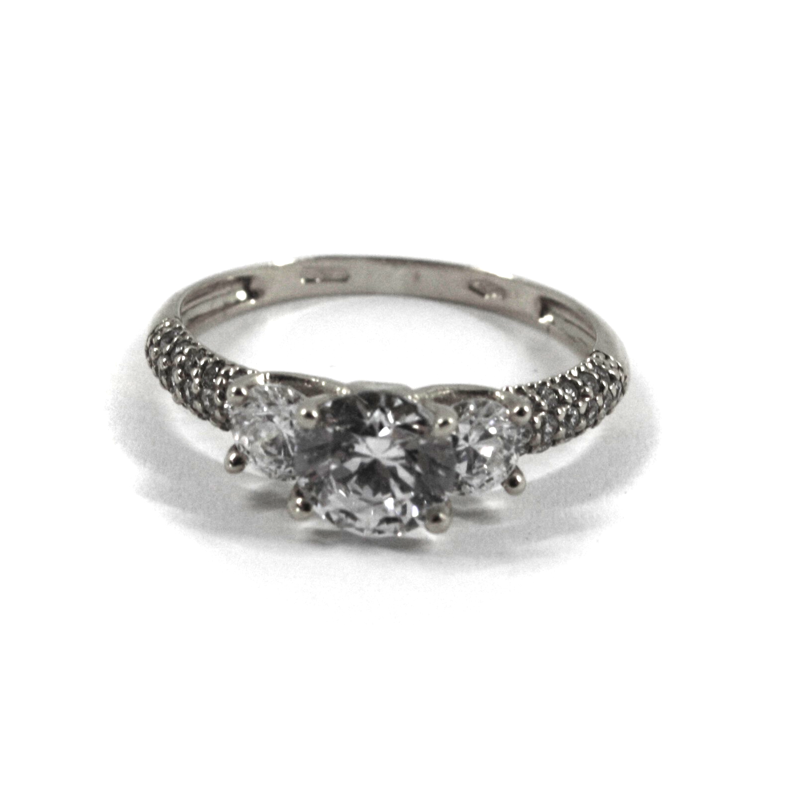 18K白金单钻三钻订婚戒指,中央镶嵌1.5克拉锆石